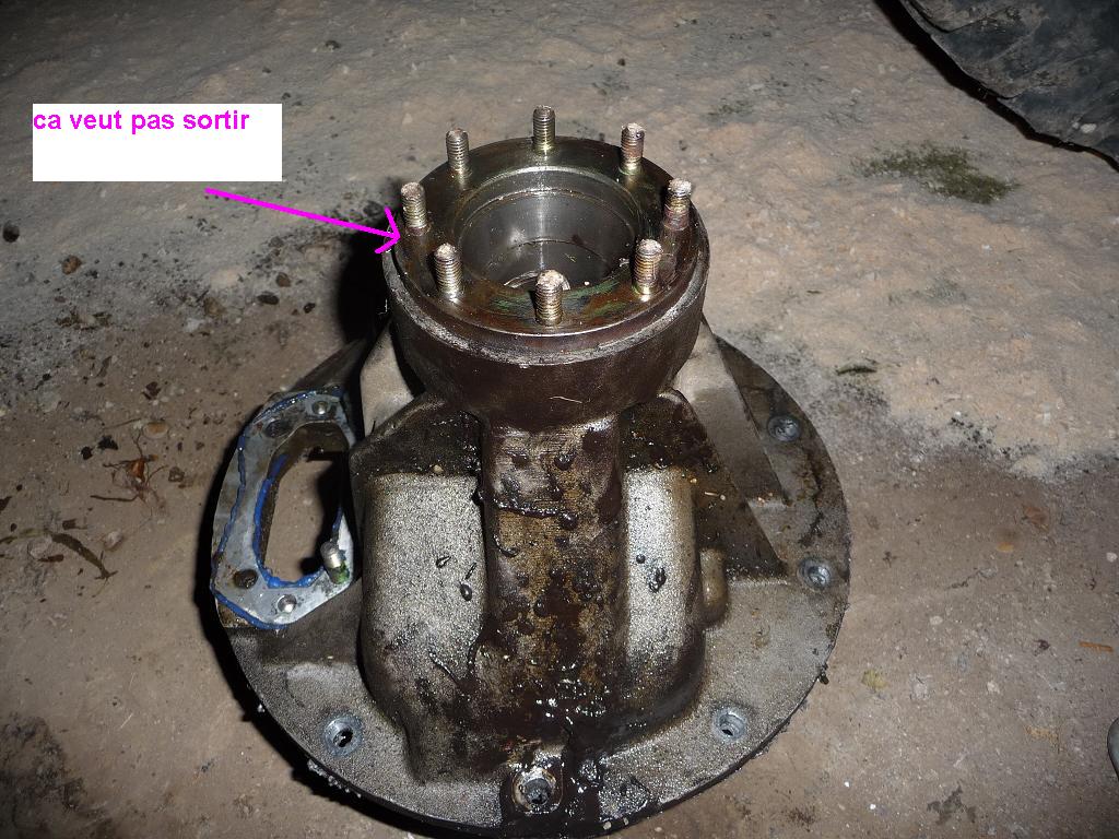Enlève ton arbre d'entrée de pont en repérant la position de son fourreau ( important au remontage pour la lubrification du roulement)
