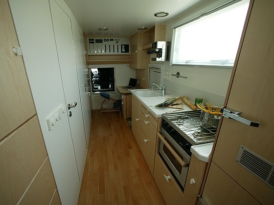 J'ai plus particulièrement regardé l'iveco cellule (5.900 kg, excusez du peu) et j'ai mieux compris le plan de notre amis portugais pour l'implantation de la douche dans la porte d'entrée... mais lui a un double cabine donc (au moins) 4 places route tandis que l'unicat cité est en simple cabine et possède pourtant 4 couchettes