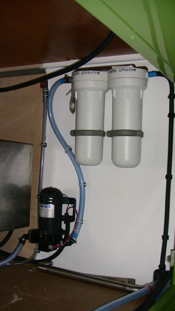 sur la face opposée (on est toujours sous le lit) la partie filtration eau potable