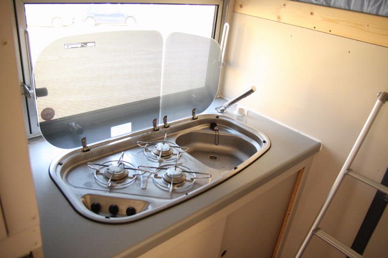 L'approvisionnement en gaz est fait à partir d'une bonbonne de 25L de LPG, elle se trouve dans un compartiment juste devant le coin coupé.