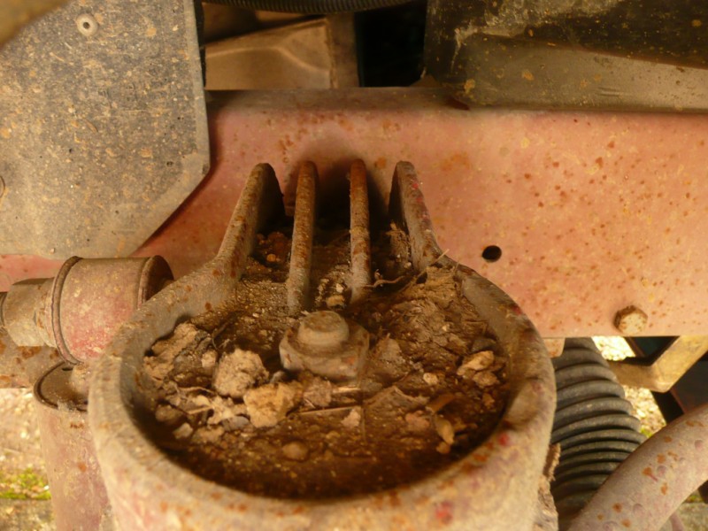 la partie supérieure est en fait creuse et nervurée...pas commode à nettoyer car elle forme un "toboggan" et tout reste coincé plus bas contre le longeron sur lequel elle est fixée.