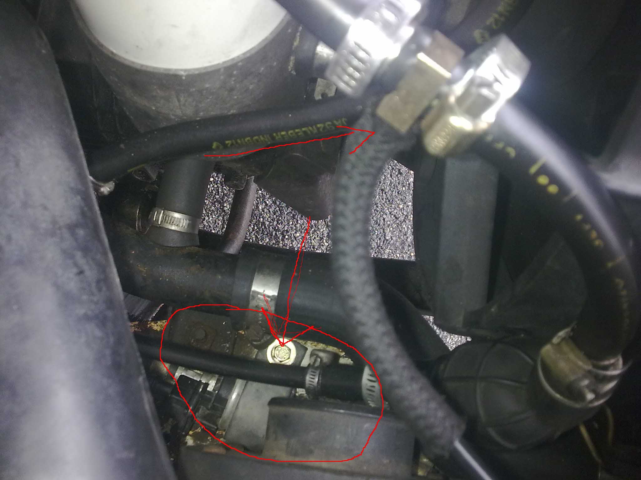 pompe à gasoil dans le compartiment moteur avec un T