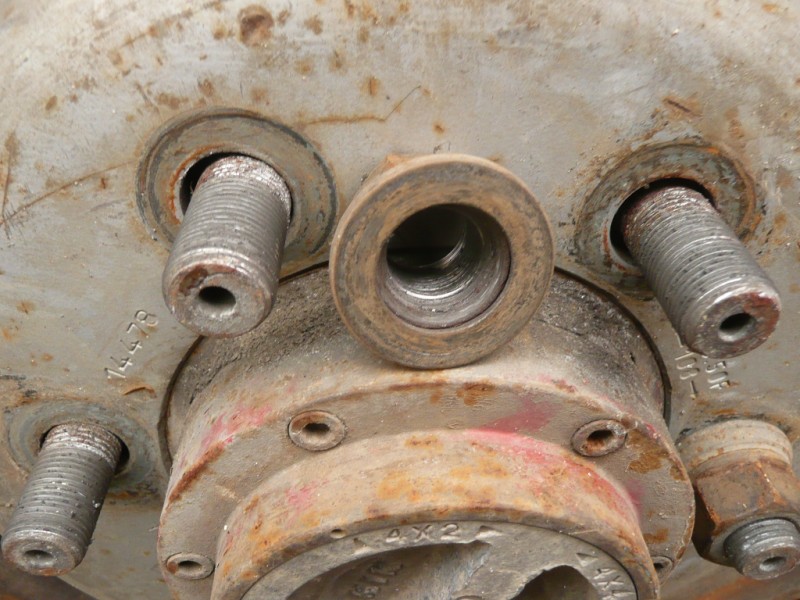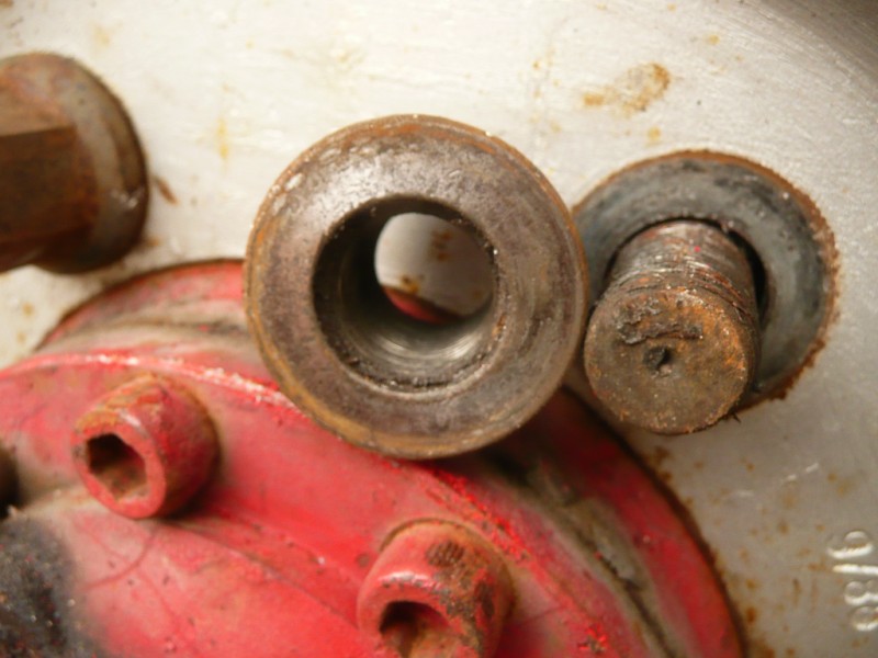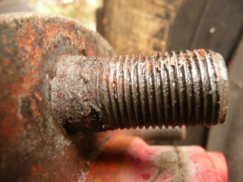un zoom sur les goujons montre que ceux ci ne sont pas élargit a la base si ce n'est par la crasse accumulée dans l'espace entre ceux ci et les trous de la roue justement