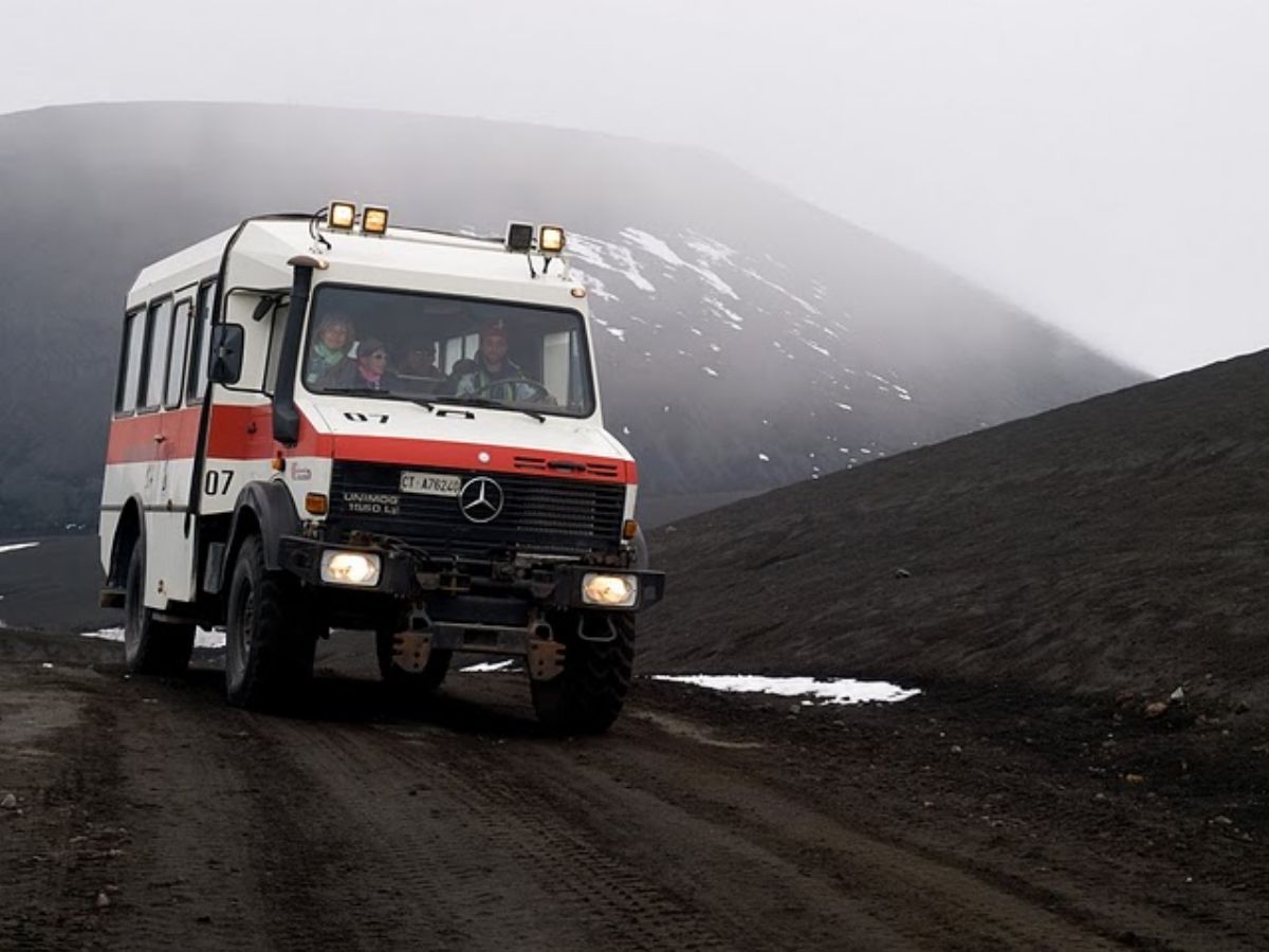 il y a de super Bus tout terrain qui montent et descendent les pistes de l'etna en sicile...je n'ai malheureusement pas pris de photos de ces véhicules...mais certainement qu'on peut en trouver sur le net.