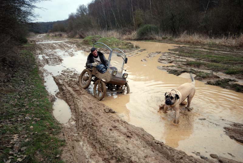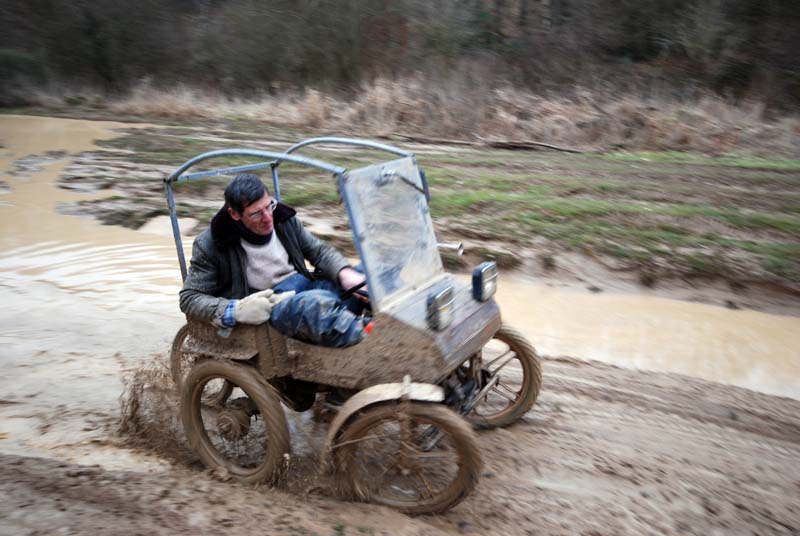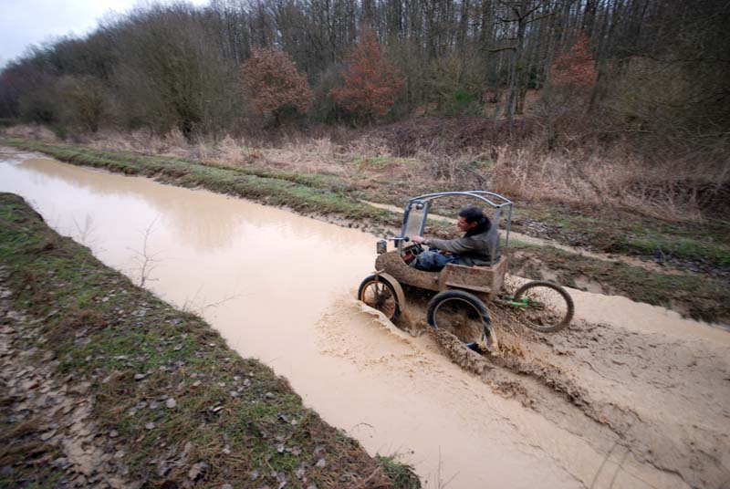 Il était à l'origine à 4 roues motrices (les roues avants étaient muent par des moteurs électriques)jusqu''au jour ou le train avant est parti tout seul dans un bourbier...depuis cette franche sission entre l'avant et l'arrière ce dahut motorisé est devenu une propulsion :lol:
