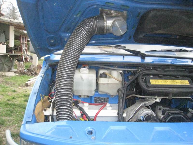 bonsoir, ci joint quelques photos de l'intérieur; le tube est en dimention 105mm, comme la sortie du fitre a air d'origine, et la pièce inox, boulonnée le plus pres possible du renfort du capot