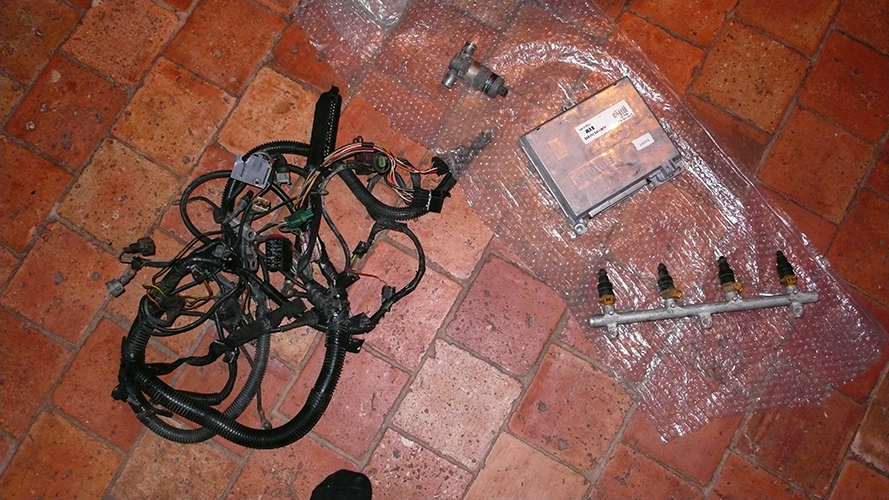 Il me reste a trouver les elements manquants (capteur point haut, pompe electrique et les bobines d'allumage et les sondes aussi je suppose vu que je n'ai pas l'air de les avoirs mais je ne sais pas a quoi ca ressemble alors.... d'ailleurs je vais allez voir sur google a quoi ca ressemble....)