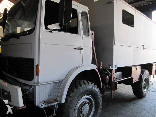Camion Renault 110/150 4X4 cabine courte 3 places carte grise vasp, révision complète ce jour, petites vitesses, blocage differenciel avant et arrière, treuil avant hydraulique, 2 pneus neuf, cellule avec hayon lateral ouverture par verin éléctrique, carrosserie en parfait etat, 300000km, Année 1988, frein refait a neuf en 2010, aucun frais à prévoir. IDEAL CAMPING CAR RAID