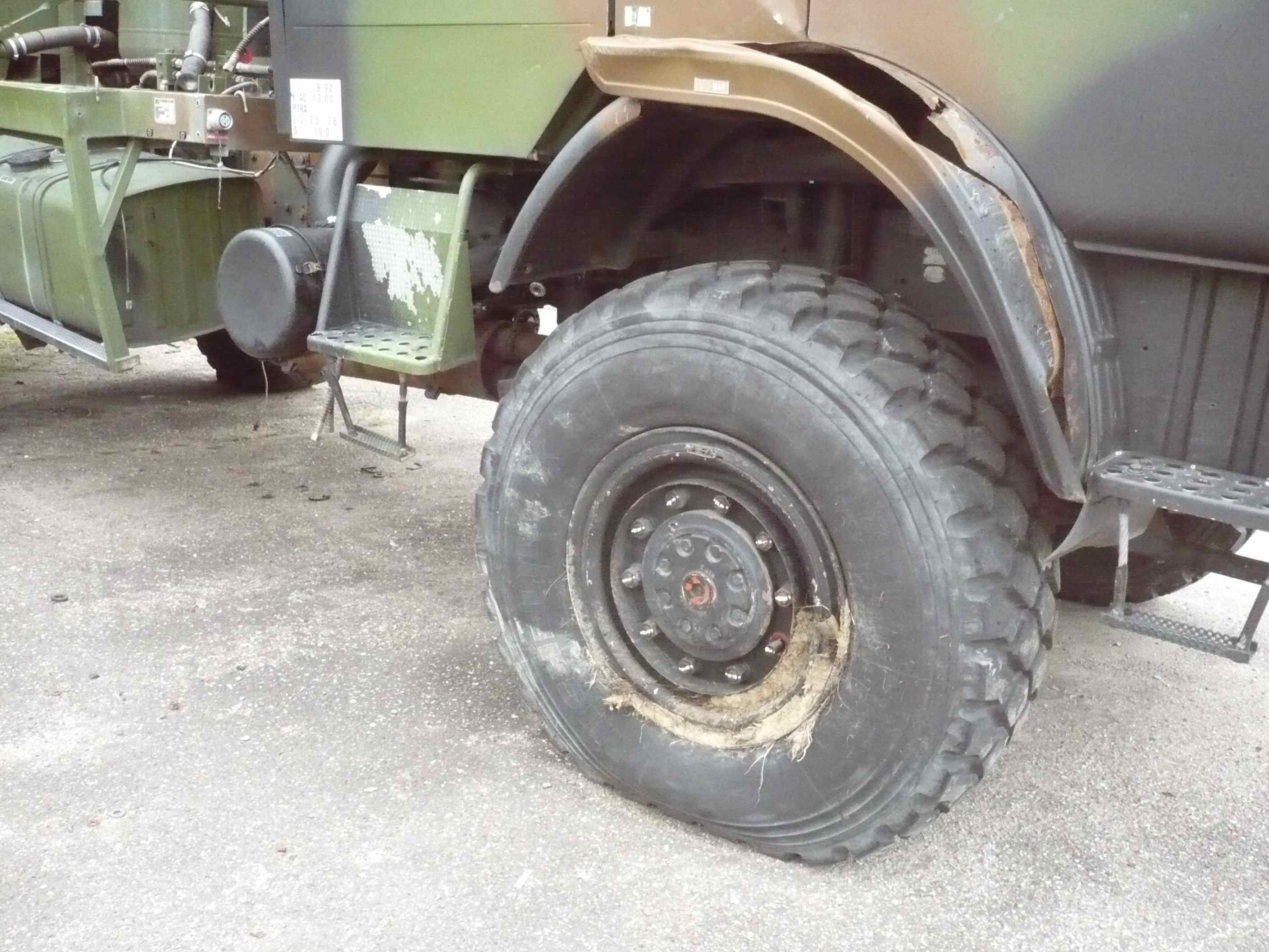 Direction LE camion, pas de soucis je le reconnais immédiatement. Pas besoin de trop se pencher pour constater qu'on peut, sans gène, organiser un teuf sous le châssis, c'est bien vide. J'enclenche quelques neurones (moyennement cramés) mmh, pas d'embrayage, pas de bv, pas d'arbres ; juste un bt qui fait figure de planton. Et bah tiens, c'est bizarre tous ces tuyaux dans le vide (ok ça rigole dans le fond) euh à gauche ou à droite les bombonnes (c'est toi la bombonne me dis-je ©lapetite).