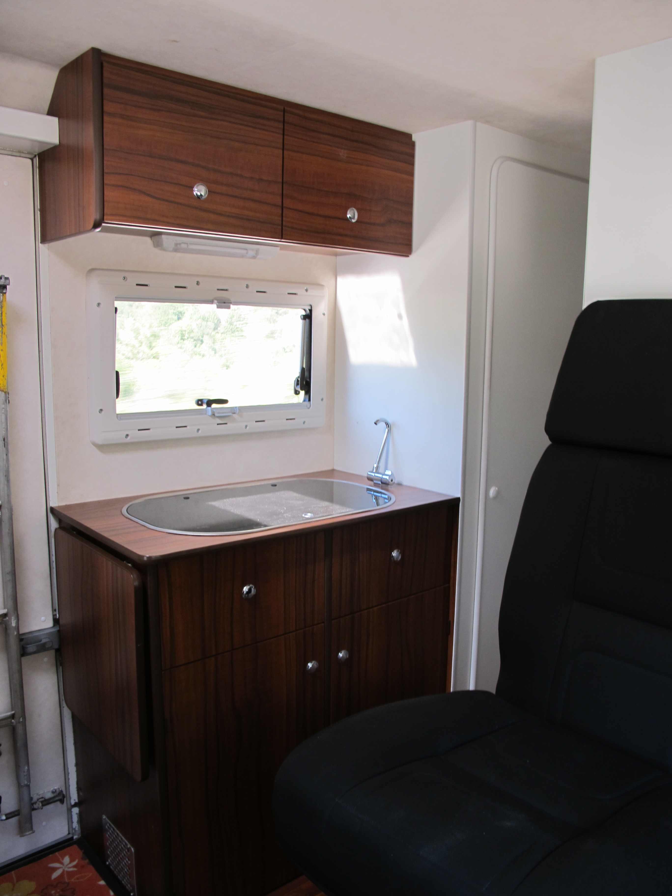- Deux couchettes superposées à l’arrière avec fenêtres
