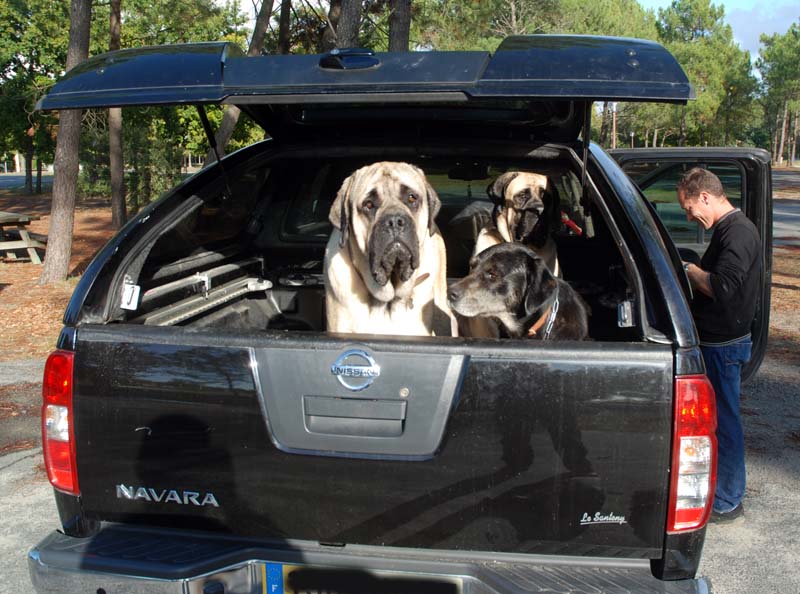 Mes Loulous "King size" qui revendiquent à ne pas être des chiens de cirque et qui ne veulent pas monter dans le Midliner...