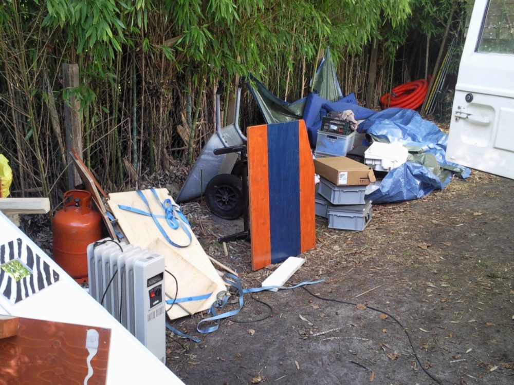 Ensuite, on avance le Pinz histoire de pouvoir accéder a la paroi derrière la cabine.... et vérifier que le concept tient...