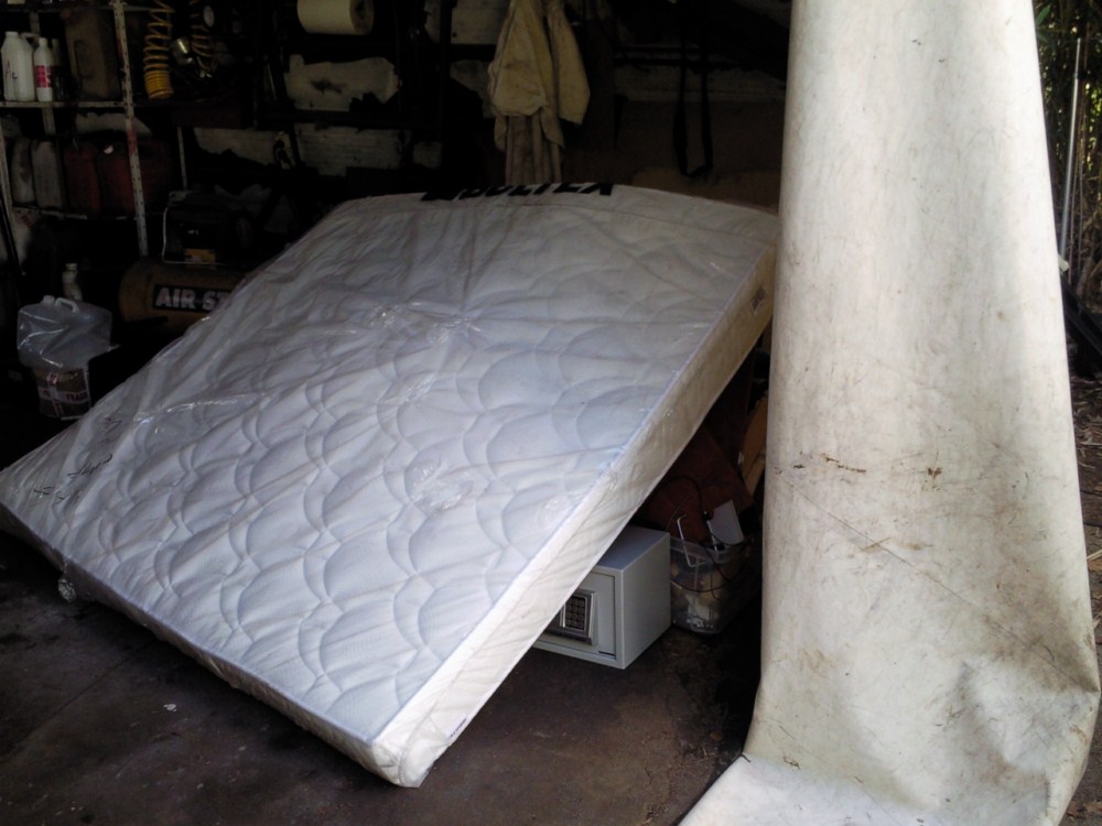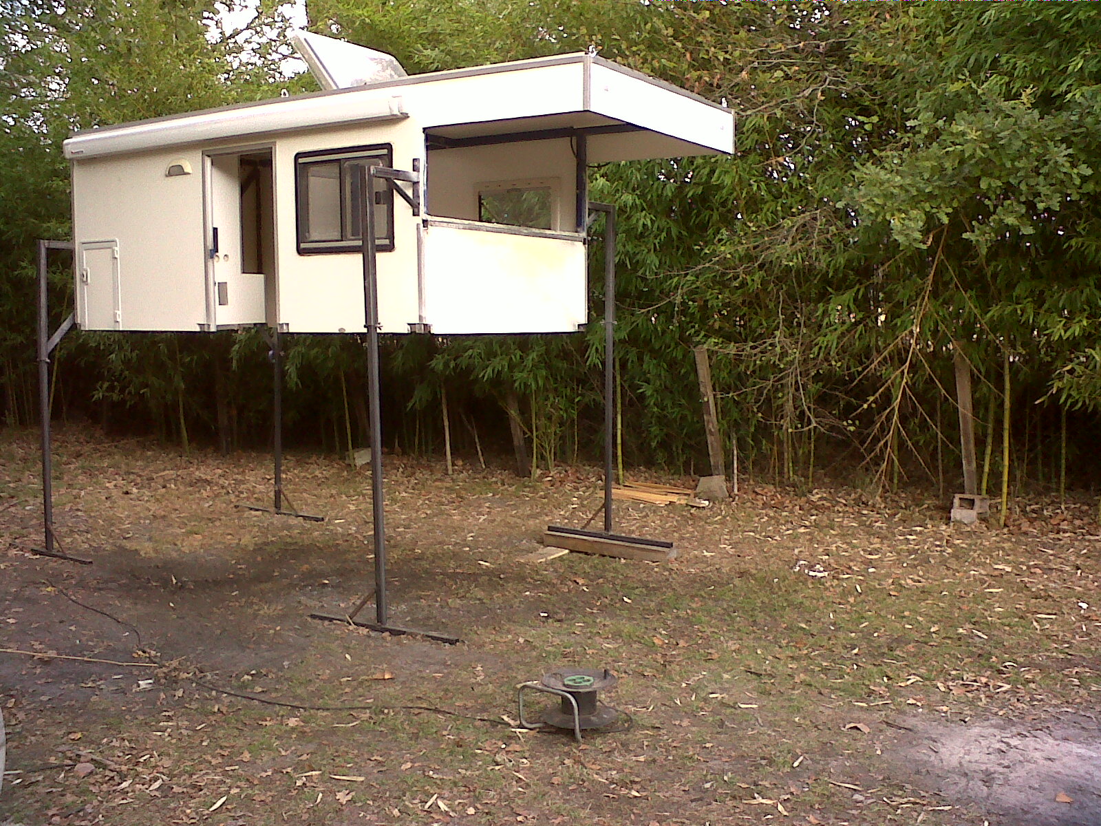 N'ayant ni portique ni grues, ni rien permettant de lever et de suspendre la cellule, à notre disposition, Doc Daniel à inventé les premiers pieds pour Pinz :