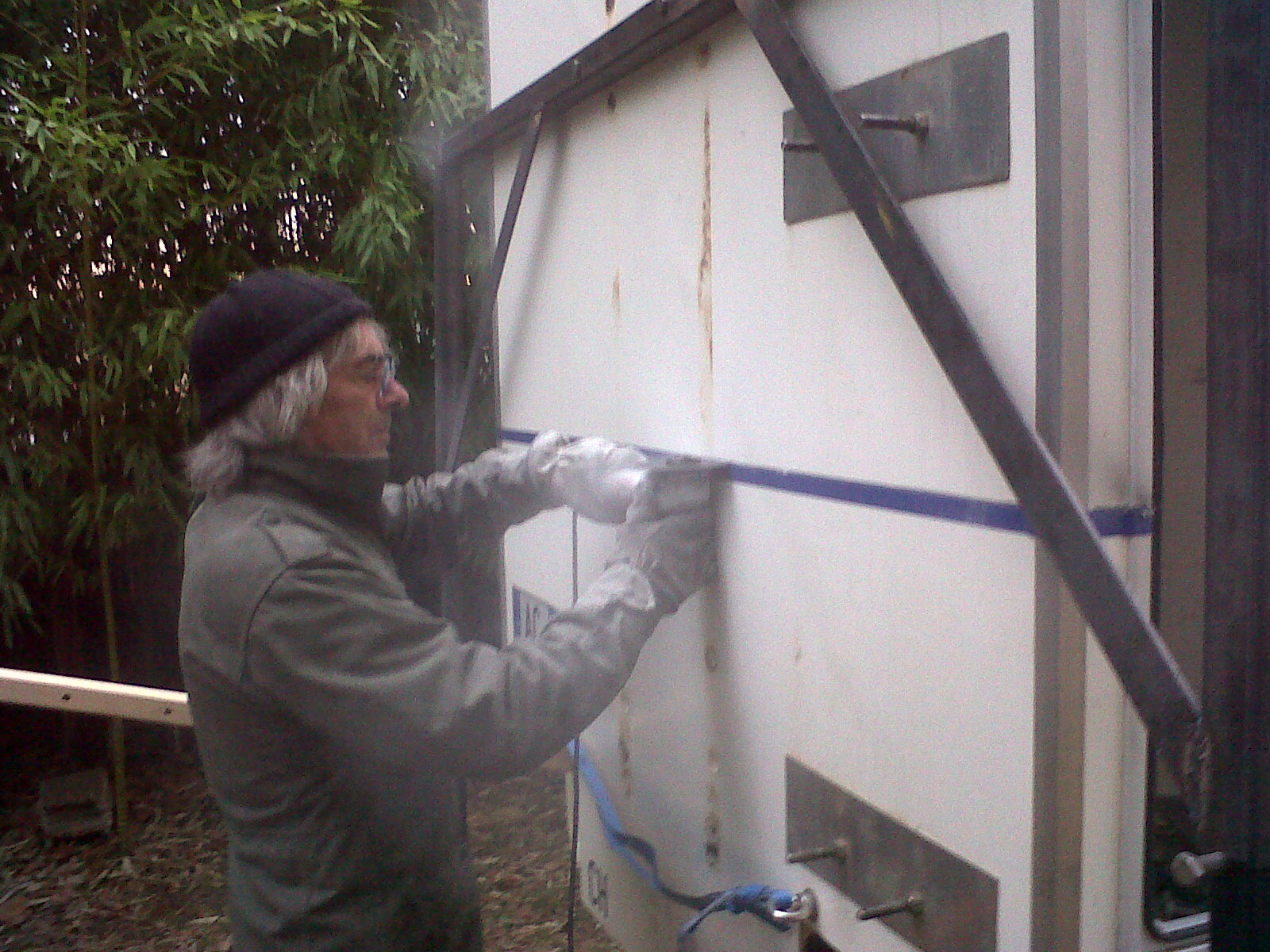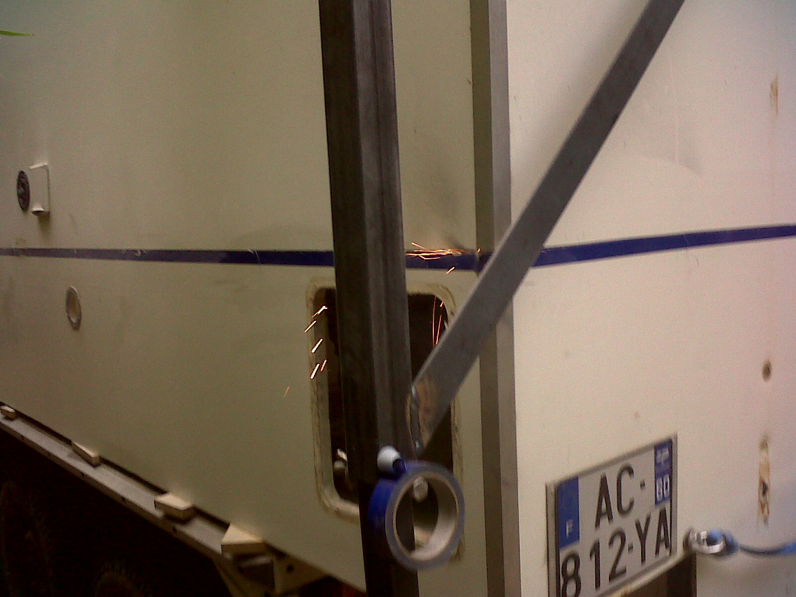 Ensuite marquage et découpe de la capucine en place, ce qui permet de la faire reposer sur la cabine pendant la découpe, astucieux : :mrgreen: