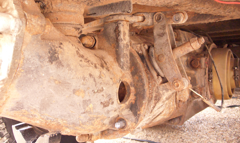 Comme les goujons sont restés sur le châssis il faut tirer vers l'AR et donc le désolidariser de la caisse, il faut aussi décrocher le levier de commande. Si mes souvenirs sont bons il y a juste une goupille à enlever sur le gros axe.