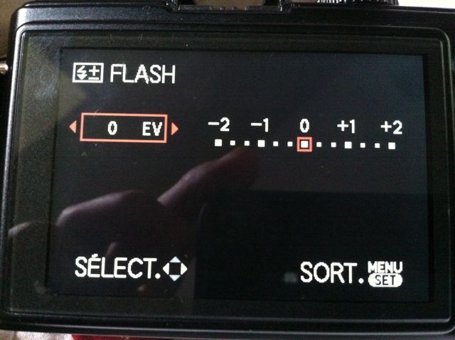 Deuxième étape, certains compacts permettent, comme pour l'exposition, de contrôler l'exposition du flash (le même logo +/- avec le logo du flash a côté, généralement, en appuyant 2 fois sur la touche +/-, on y arrive).