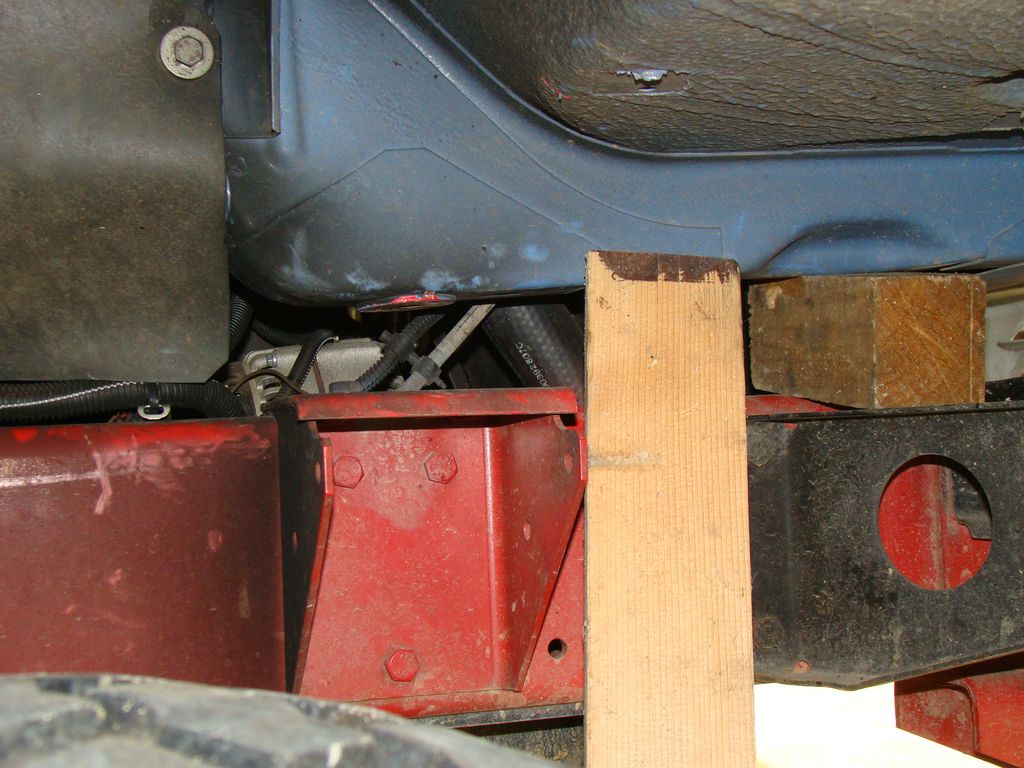 Pour lever et remplacer les silenblocs, tu peux utiliser un cric bouteille d'un côté puis de l'autre, ou à l'avant puis à l'arrière, soulever de 10/20mm, caler entre la caisse et le châssis au fur et à mesure avec des cales en contreplaqué, plutôt que de tout lever d'un coup et perdre l'alignement des trous, chiant à remettre en place sans un pont roulant.