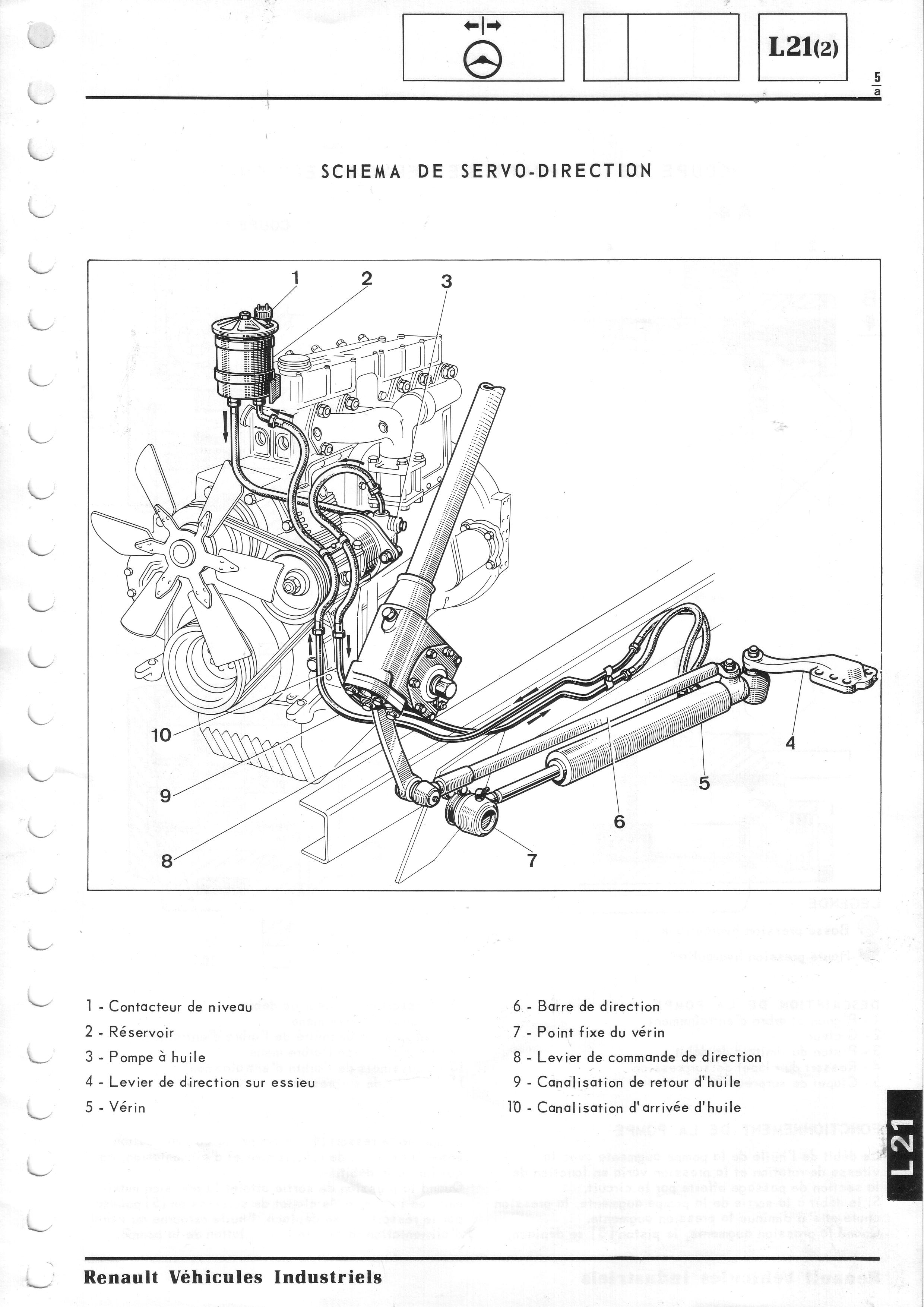 il y a une trentaine de pages consacrées à la direction. Si besoin, je peux poster certaines d'entre elles (coupe pompe, vérin, fonctionnement, démontage 12p pour le vérin et 4p pour la pompe, contrôle, caractéristique technique, outillage).