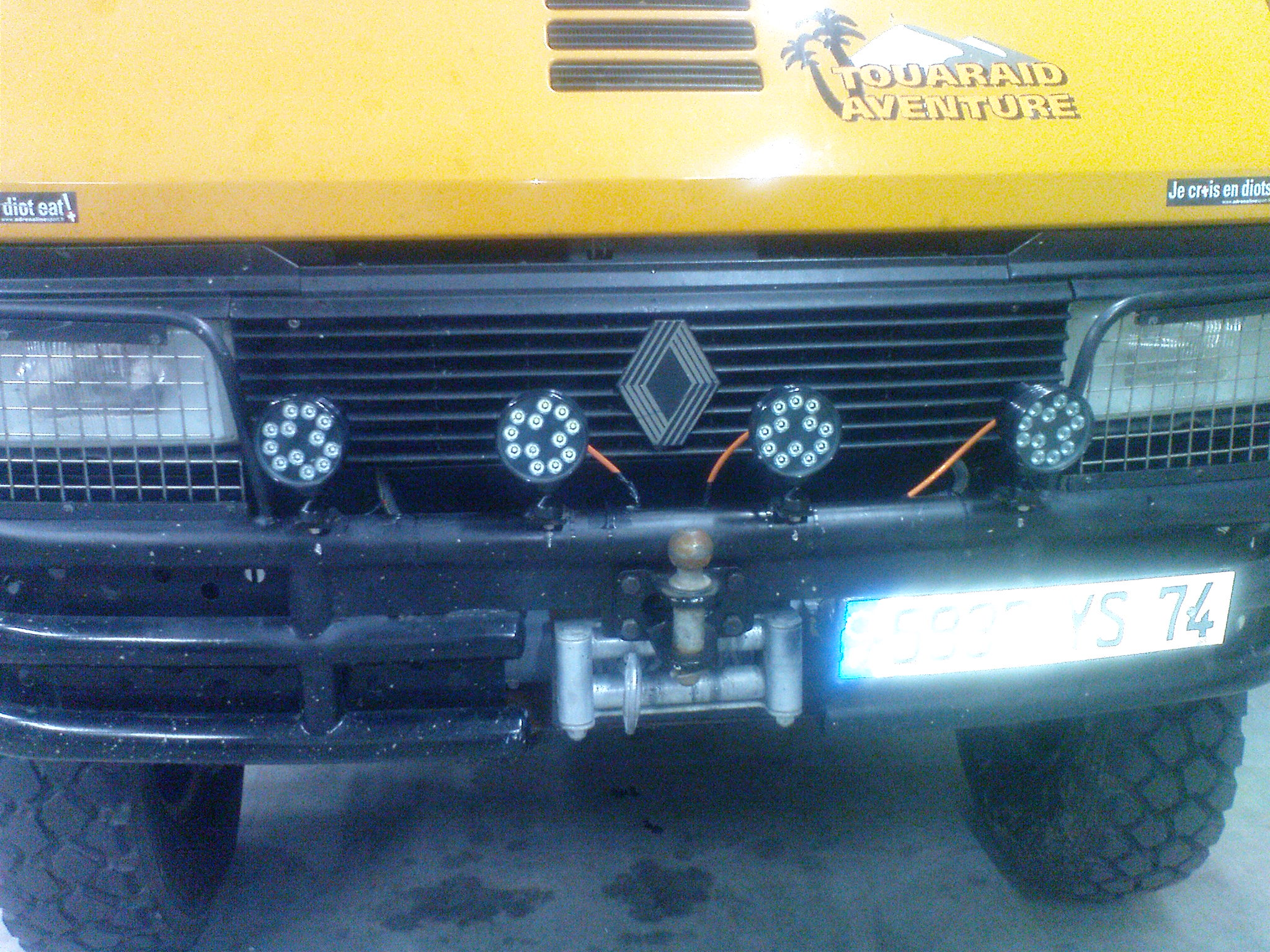 Ah , j'oubliais , çi après les photos de mon pare-chocs , avec ses 4 phares à led de ma fabrication !!!! Eclairage très grande puissance assuré pour une consommation de 4,5 A par phare.......