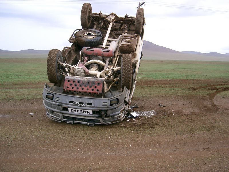 Caisse: face droite passager carrosserie très endommagée. Haut de caisse voilée, plus de pare brise ni de vitre passager, rétro passager cassé. Les 2 durites cuivre de frein arrière arrachées lors de la sortie du fossé.