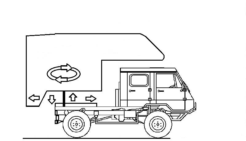 en position" chemin" soit 20 à 25 cm au dessus de la cabine
