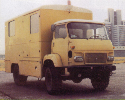 Ce SM8 construit par SINPAR a été livré en 1970, il a servi au SEV de Bretigny sur Orge (Essonne) comme camion de trajectographie optique. Un matériel identique a été réalisé sur L64.8 4x4.