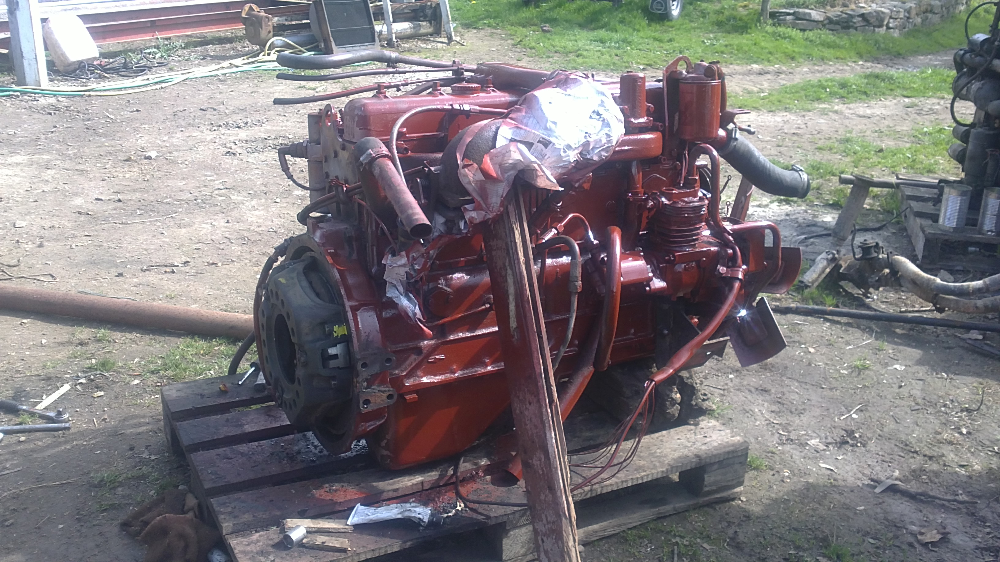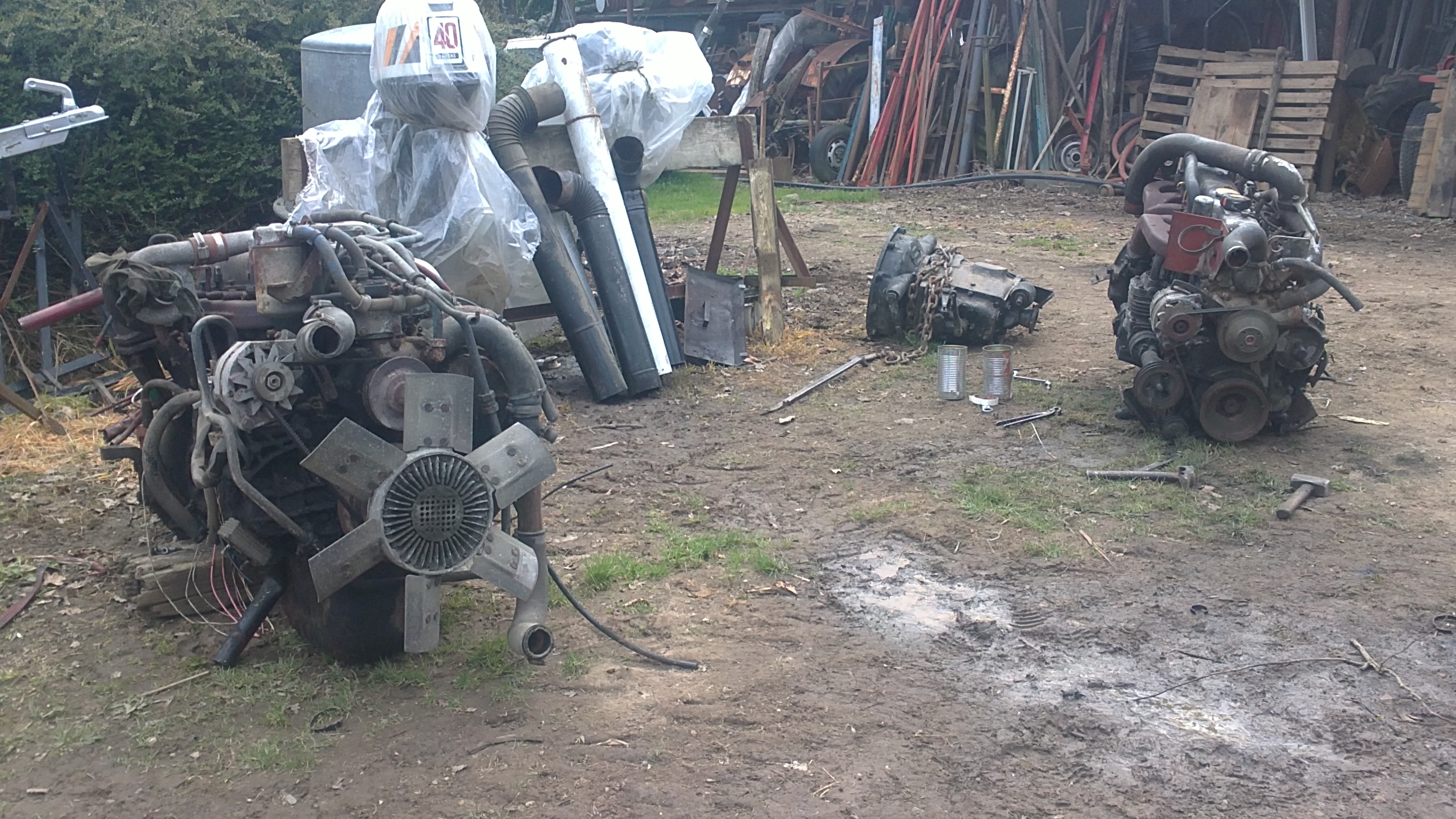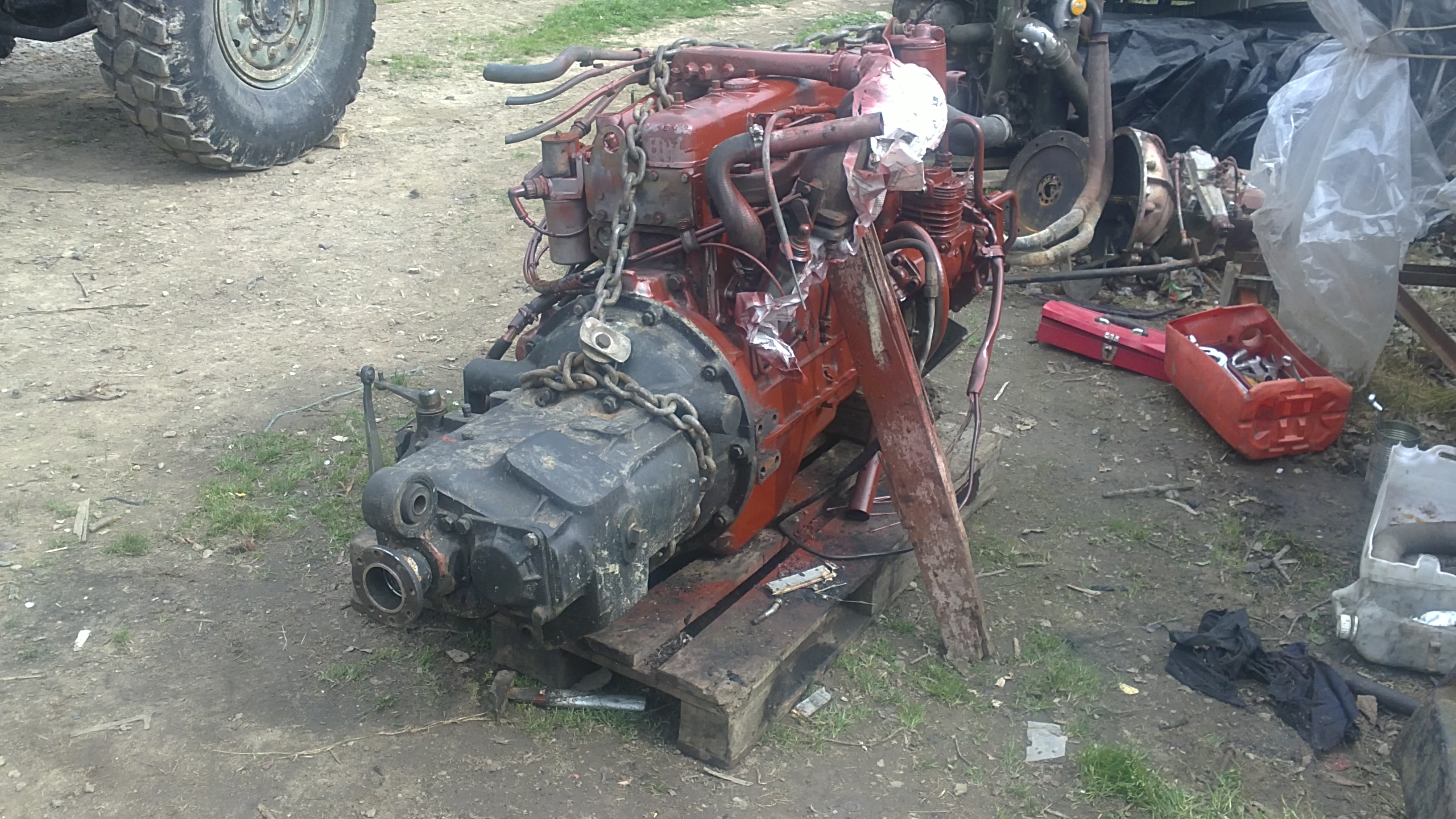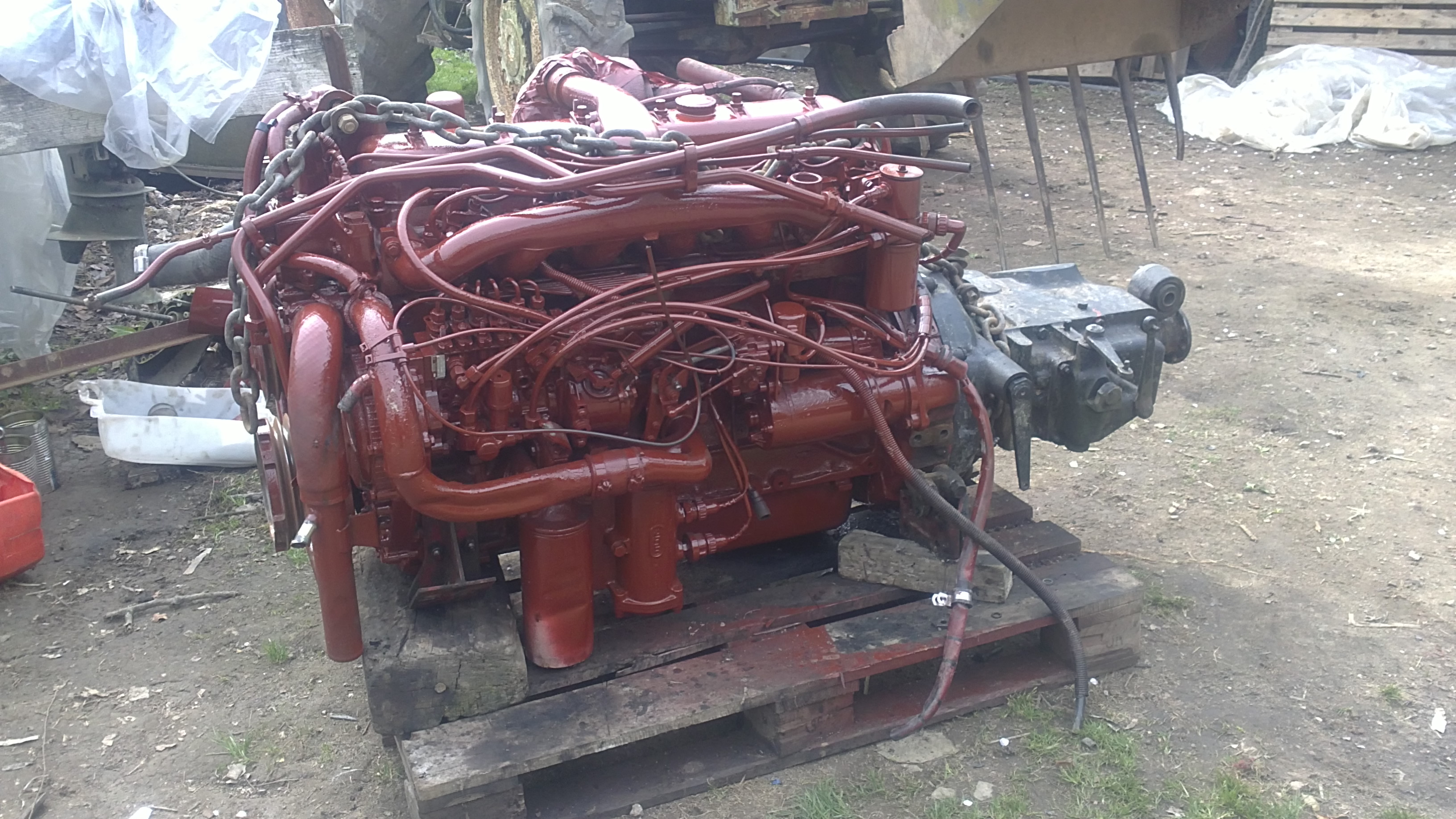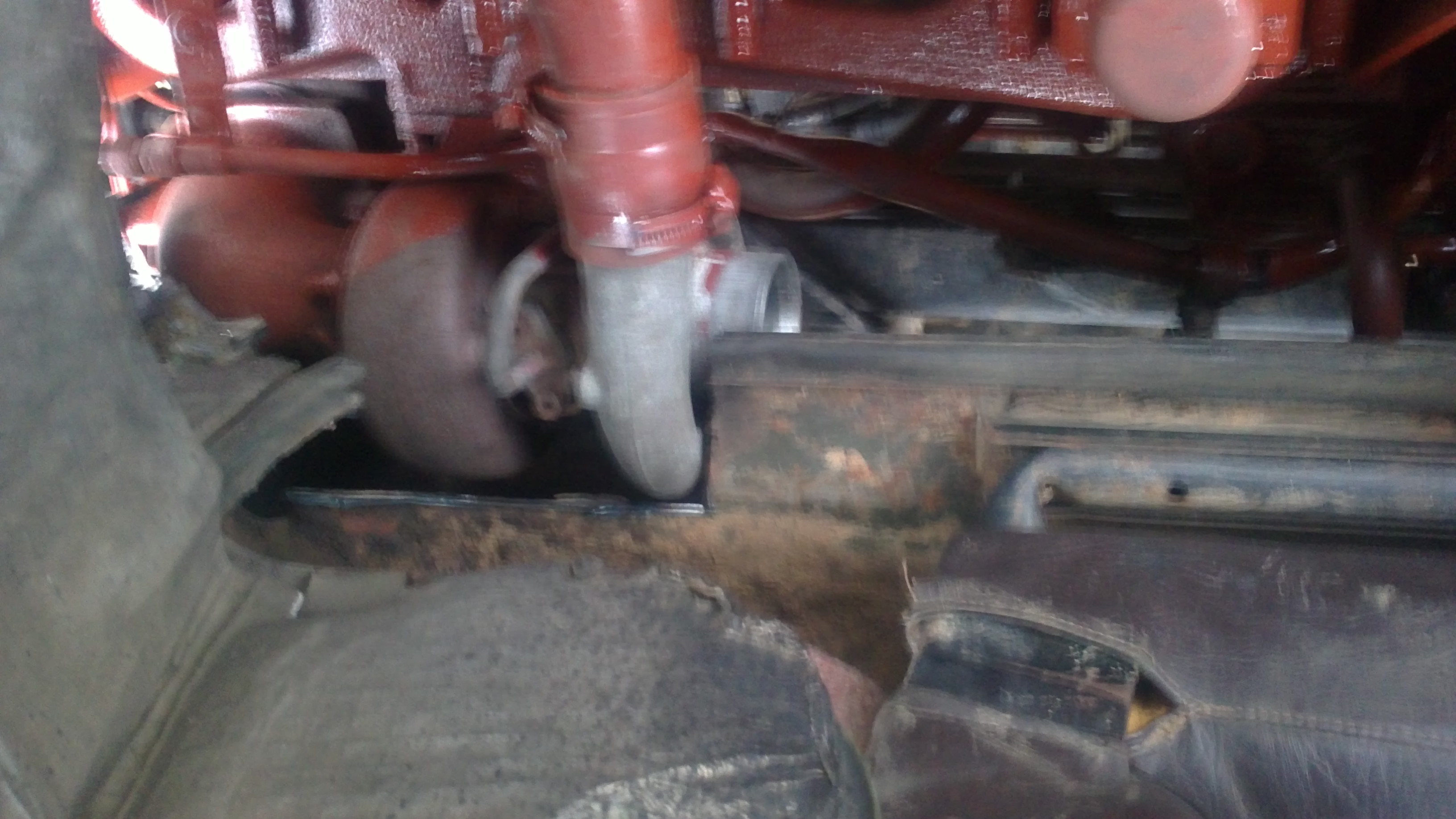 J’ai mis un moteur renault midliner 06.02.12.D. C’est assez facile car c’est le même bloc que le 797 d’origine. Attention , il y a eu une modification à faire au niveau de l’embrayage. Je ne sais plus exactement en quoi cela consistait mais on a du faire une pièce d’adaptation. Un petit découpage dans la cabine a permis de placer le turbo avec ses tuyaux et une longue conduite a été nécessaire pour amener l’ air à l’intercooler placé sur le toit. Je n’ai pas touché aux arbres et boites de vitesses.