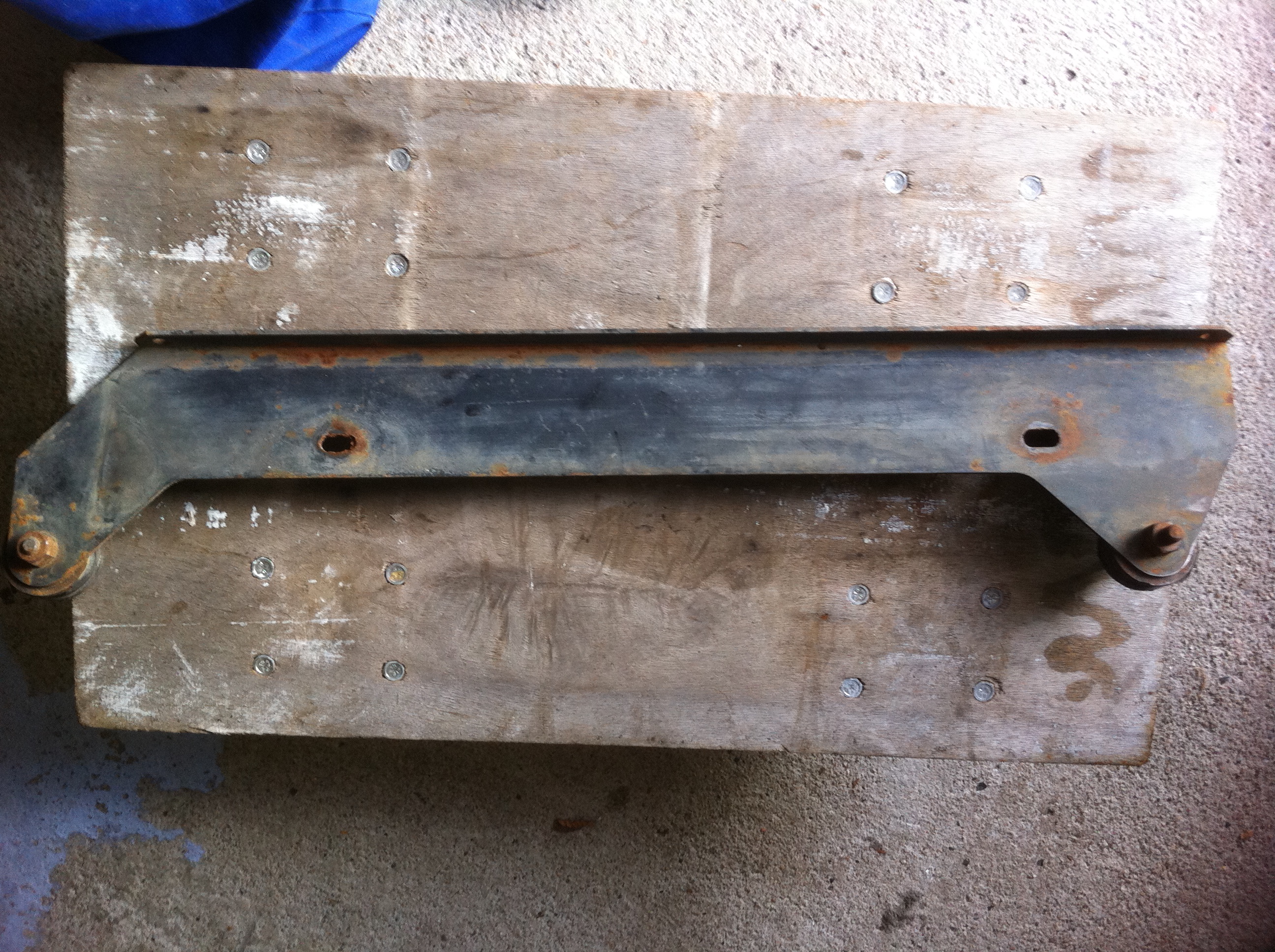 Les 4 petits carrés au centre c'est mes petits crics bouteilles montés sur roulettes et à l'avant du cadre (à droite si vous préférez) c'est deux tubes coulissants qui vont s'insérer dans les trous qu'on a prévu dans la partie verticale à l'avant du plancher du Zipou.