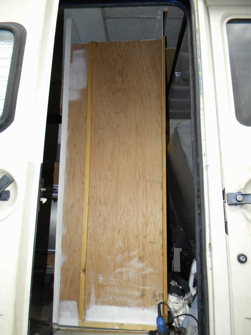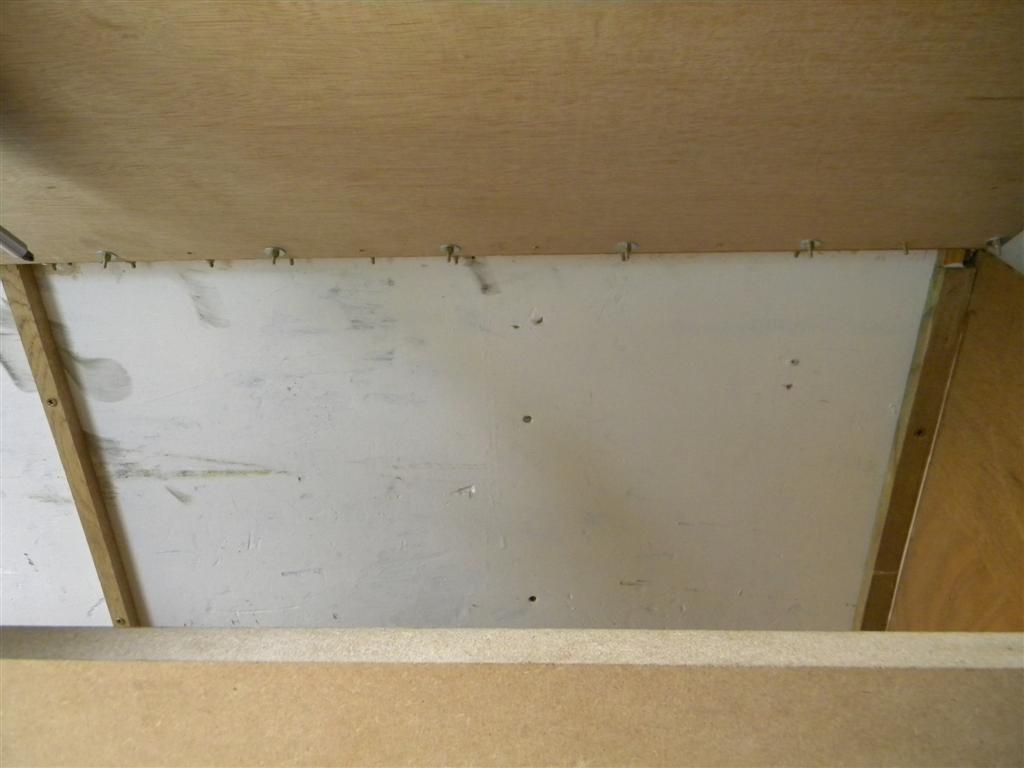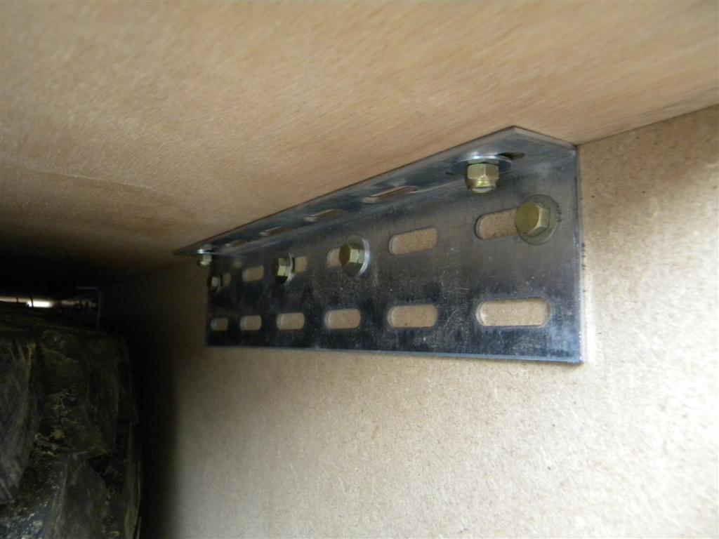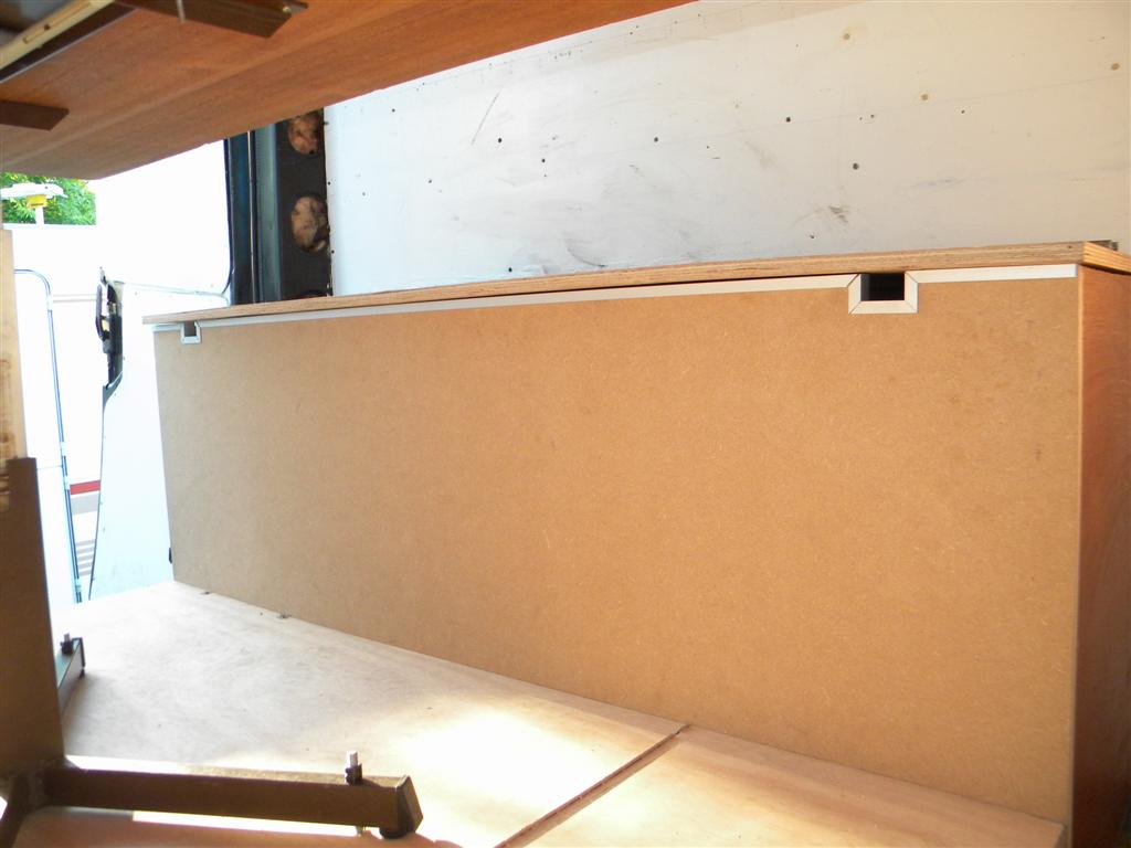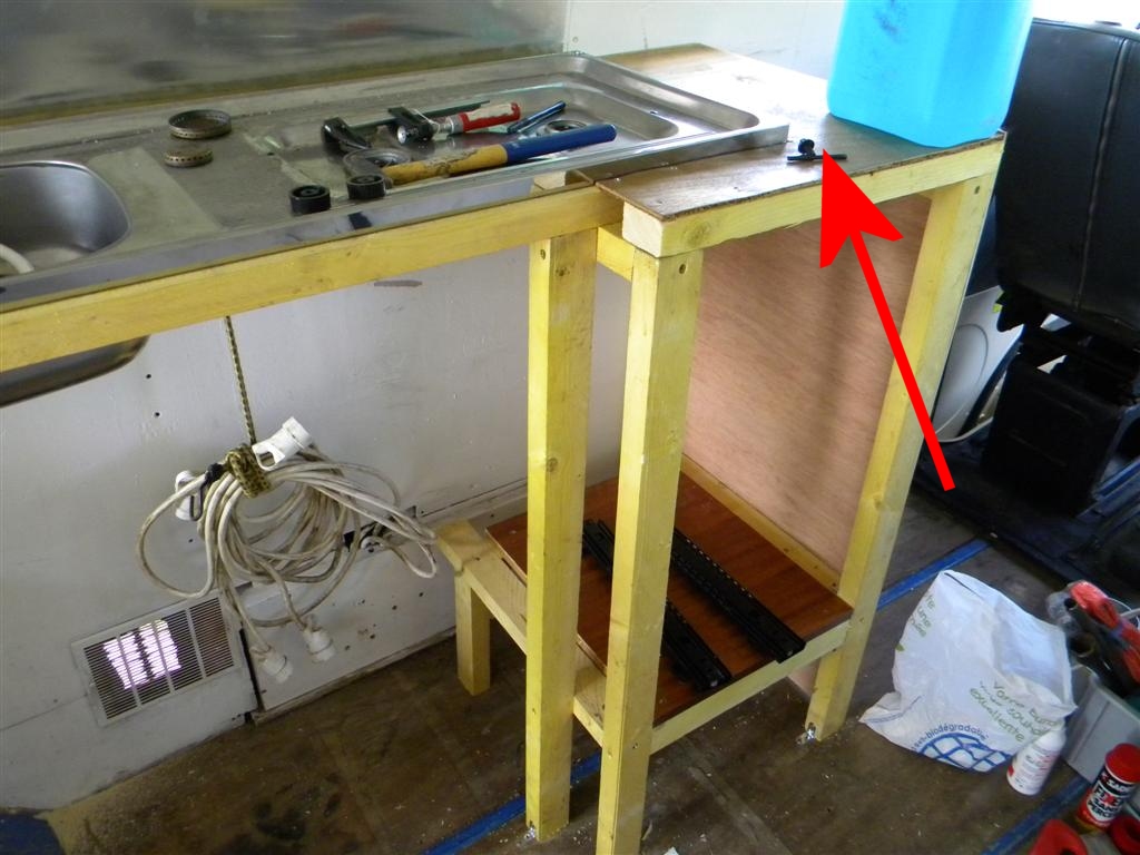 Le petit meuble au dessus du coin cuisine (porte coulissante sur rail) a été installé sans aucune vis, que du sika, ça tient bien !