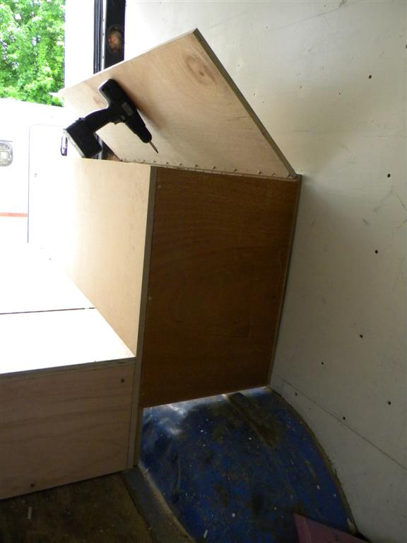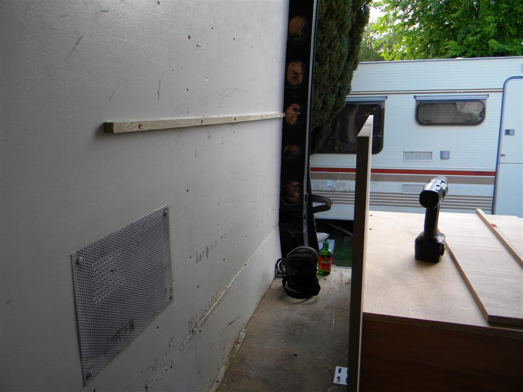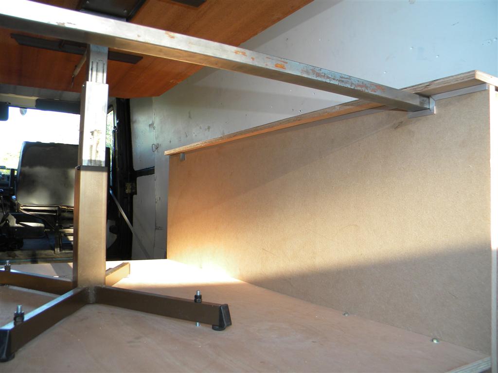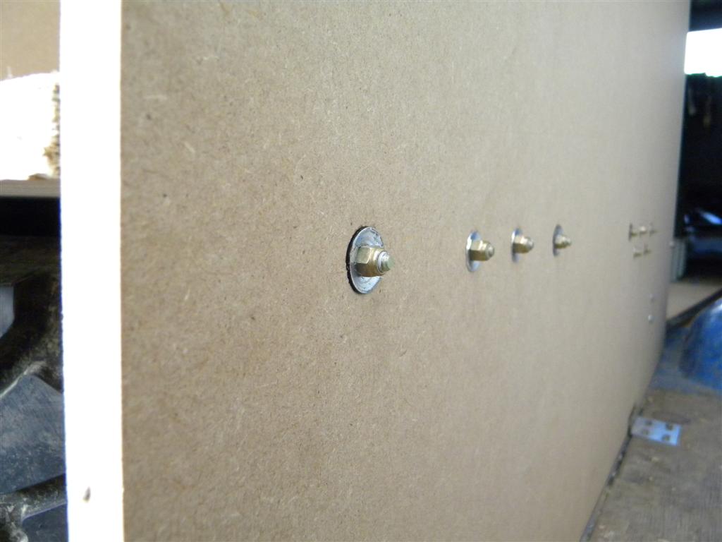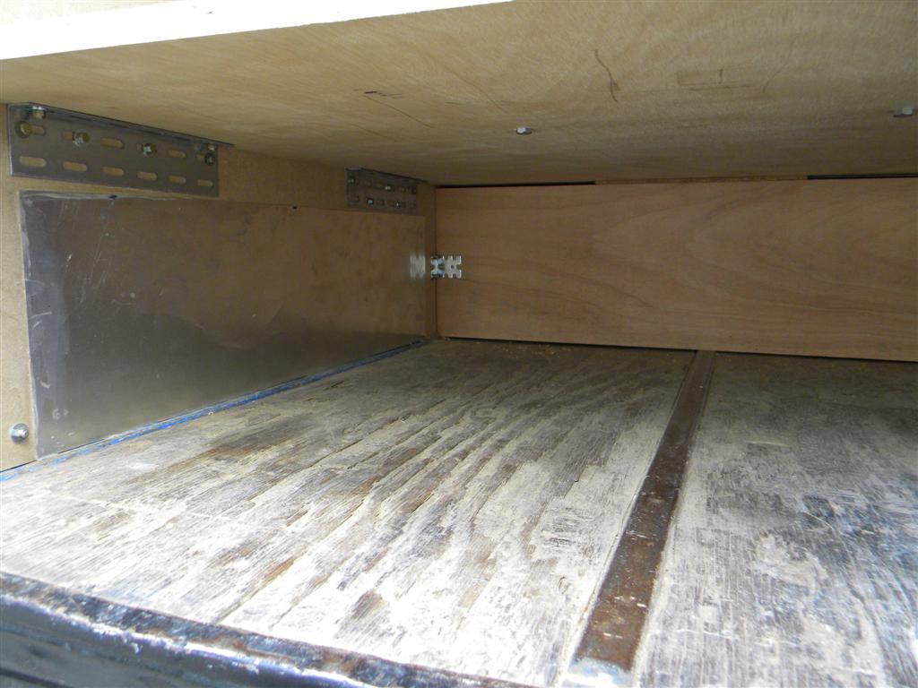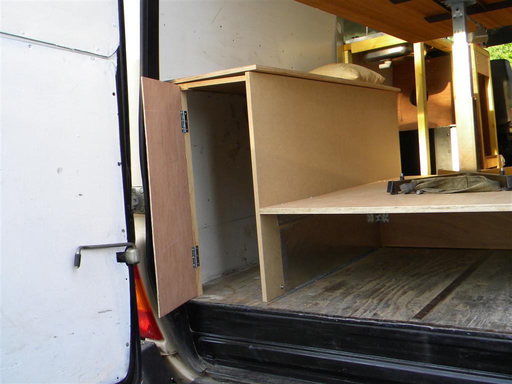 Le petit meuble au dessus du coin cuisine (porte coulissante sur rail) a été installé sans aucune vis, que du sika, ça tient bien !