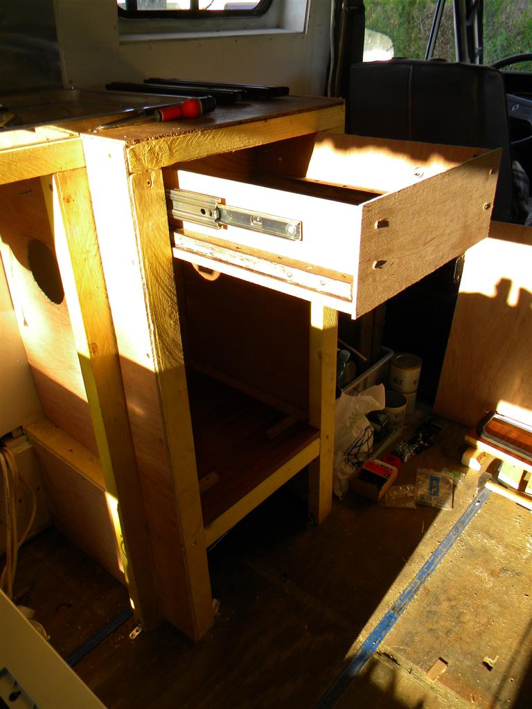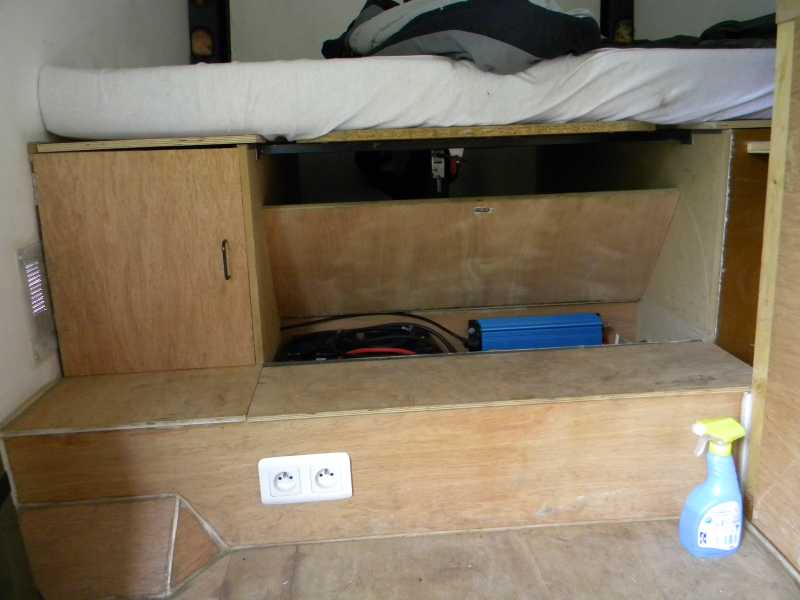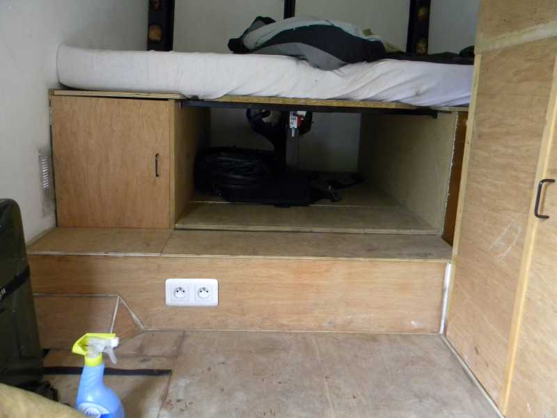 réservoir sous châssis, ajout de placard, isolation plancher, douche, wc, finition, etc ...