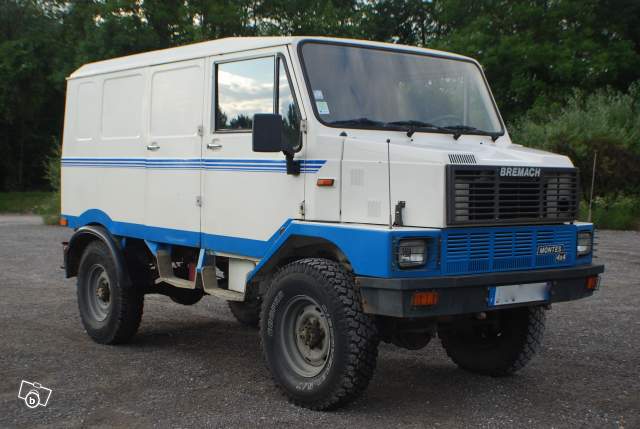Lot composé d'un Bremach GR35 2,5l 4X4 modèle "Montes" court, mécanique Iveco: véhicule tout terrain équipé d'une boîte de transfert avec crabotage du pont avant, vitesse courte et longue. Blocage de différentiel. Caisse vide, à aménager selon besoins. 95000 km, Diesel, Permis VL, Année 1988. CG 5 places. CT moins de 6 mois, à renouveler avant le 21/04/2012. Distribution faite à 84 000 km. Conso en conduite mixte très raisonable. Toutes vidanges faites, véhicule opérationnel. Empâtement 2,6m, voie 1,70. Bon franchisseur, mécanique simple. Proche de l'unimog en plus léger, et du B110 avec une hauteur de toit beaucoup moins encombrante. Alternative au range rover mais avec châssis d'utilitaire 3,5t