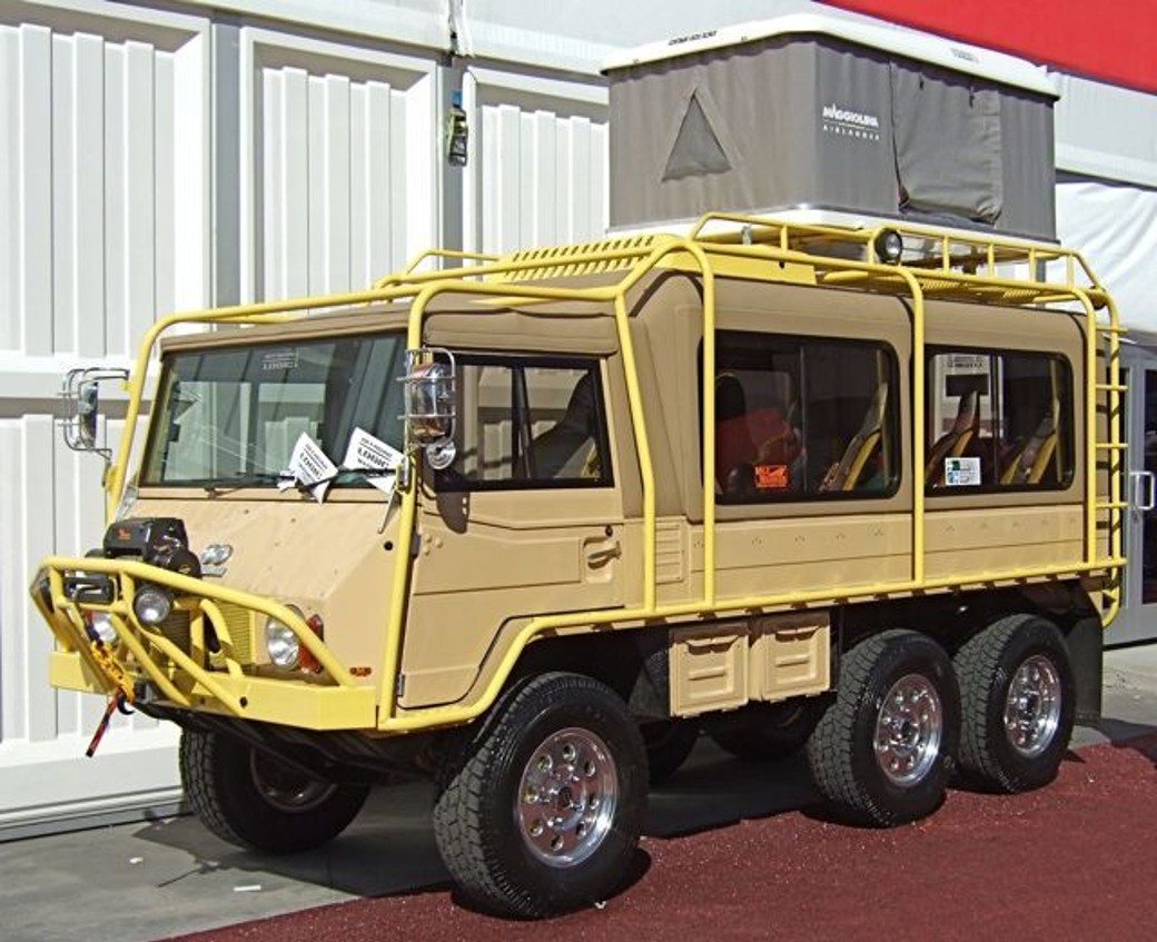 Il existe en 4x4, 6x6, apparement 8x8 (prototype?) et a de sacrées performances en tout-terrain de part sa petite taille, sa faible hauteur et ses porte-à-faux très courts.