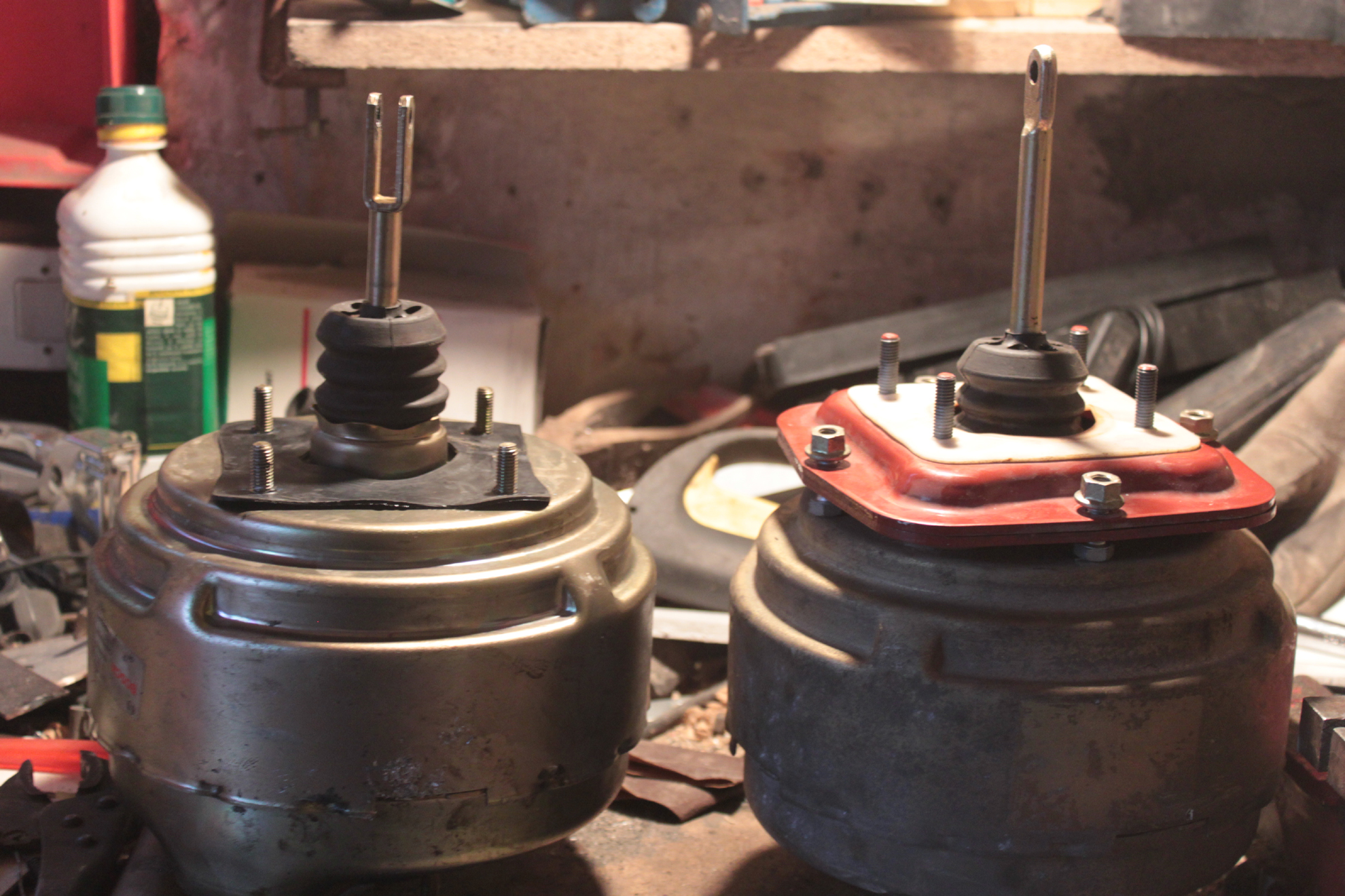 Pour le fun, il existe aussi une autre différence de montage, celui de l'axe de fixation à la pédale, d'où l'embout autre. Il n'y a que deux choses communes entre les deux mastervacs, le bol et le maître-cylindre. C'est déjà ça.
