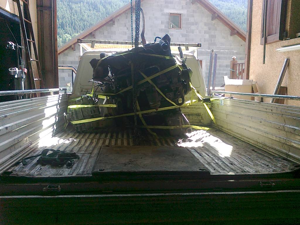J'ai sortie le moteur par la porte passager (arrrgghhhhhh) ca passe mais c'est galere, si c'etait a refaire, je vire la cabine !