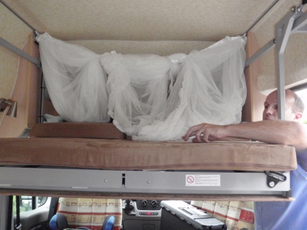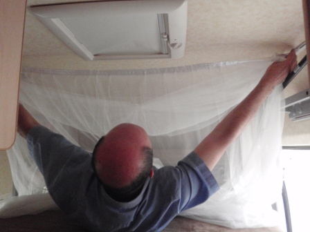 Vu que les anophèles ne piquent que la nuit, on avait deux endroits où les poser : le lit des parents, lit de pavillon téléscopique, et le lit des enfants, lit permanent qui devra aussi servir de salle de jeux.