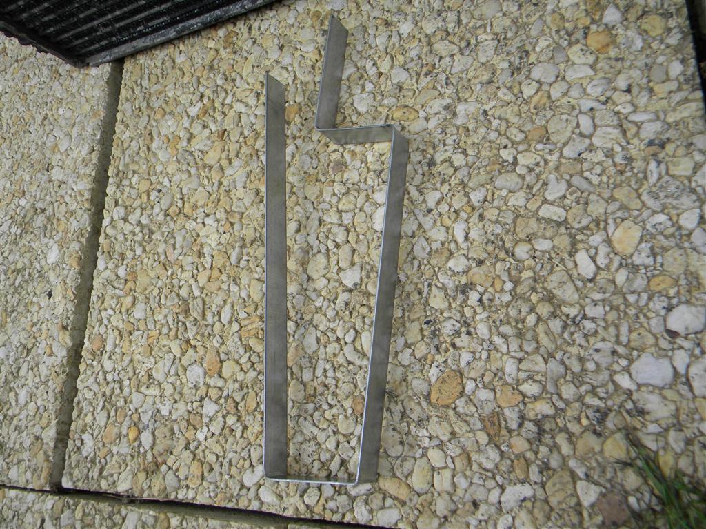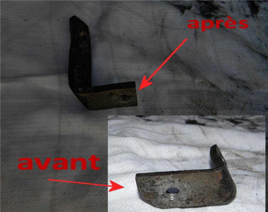 comme je suis partisan du moindre effort :oops: , j'ai opté pour une solution facile (pas de soudure) ... et donc pas de dépose du radiateur et le remplissage avec la purge qui s'en suit ... mais création d'une pièce de support à base d'un plat d'acier zingué d' 1,5mm frappé au marteau et à l'enclume :wink: ... et puis, de plus, je me suis aperçu après coup qu'il y avait une vis cassée dans un des support latéraux de l'intercooler :( ... (qui dit : perçage taraudage , galère )