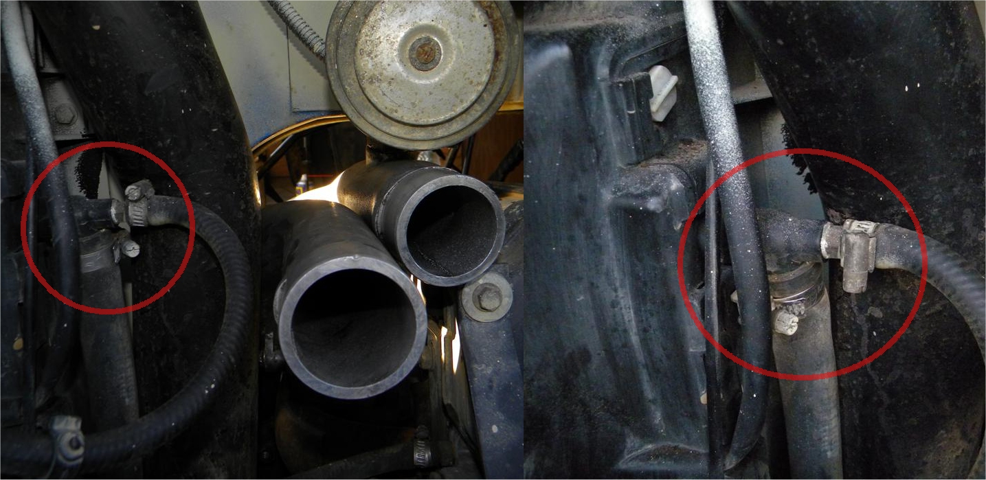 colliers tournés pour éviter d'abimer la durite d'admission (à gauche avant, à droite après)