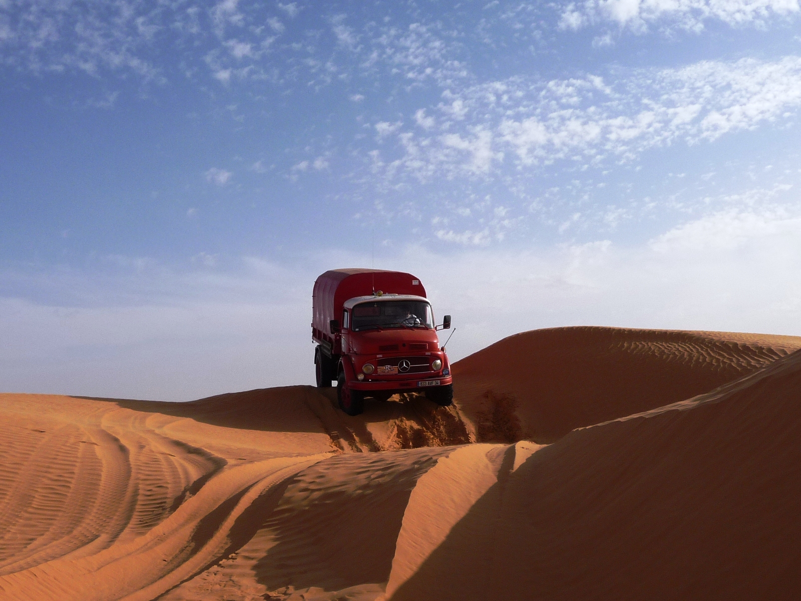 Jolies photos dans le sable qui me titillent... ça à l'air de passer dans des endroits un peu cabossés. Je ne peux m'empêcher d'essayer de faire une comparaison avec mon Ponticelli (sans parler de la taille des roues), rapport poid/puissance, je suis à 100CV (bientôt 120) pour 4 tonnes : ça donnait quoi pour ton ancien camion ? (C'est un critére parmi d'autres mais c'est quand même important)
