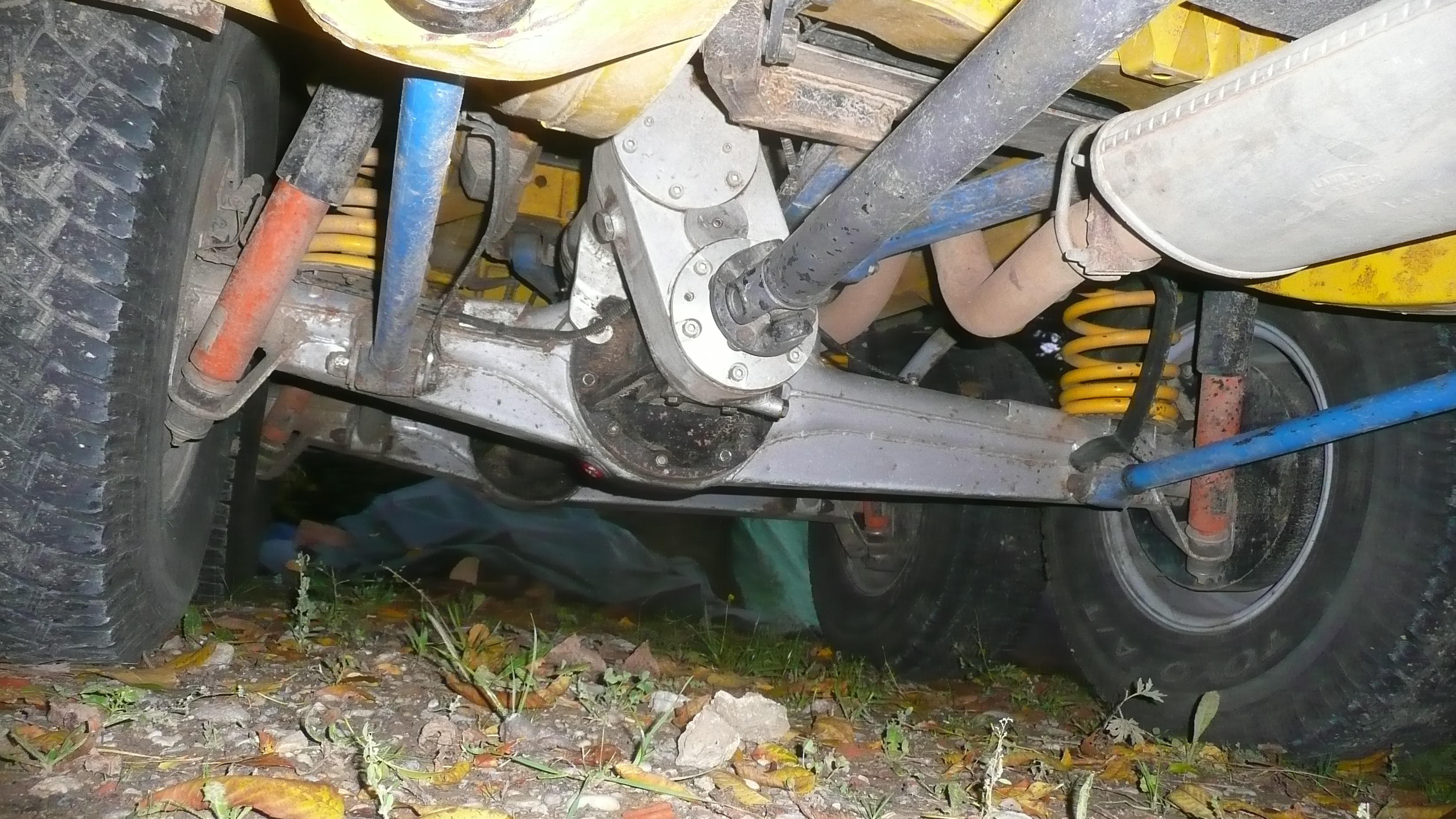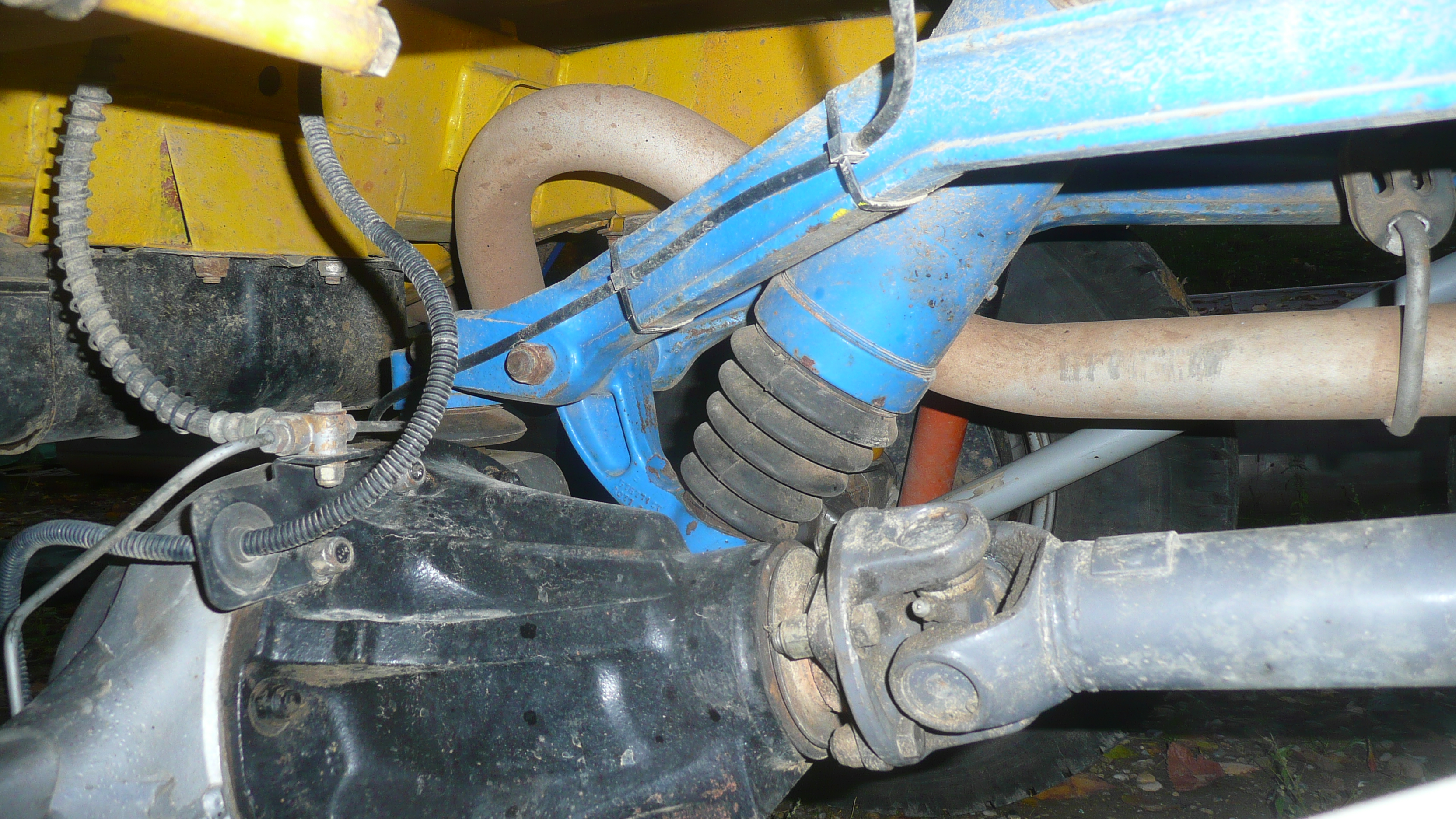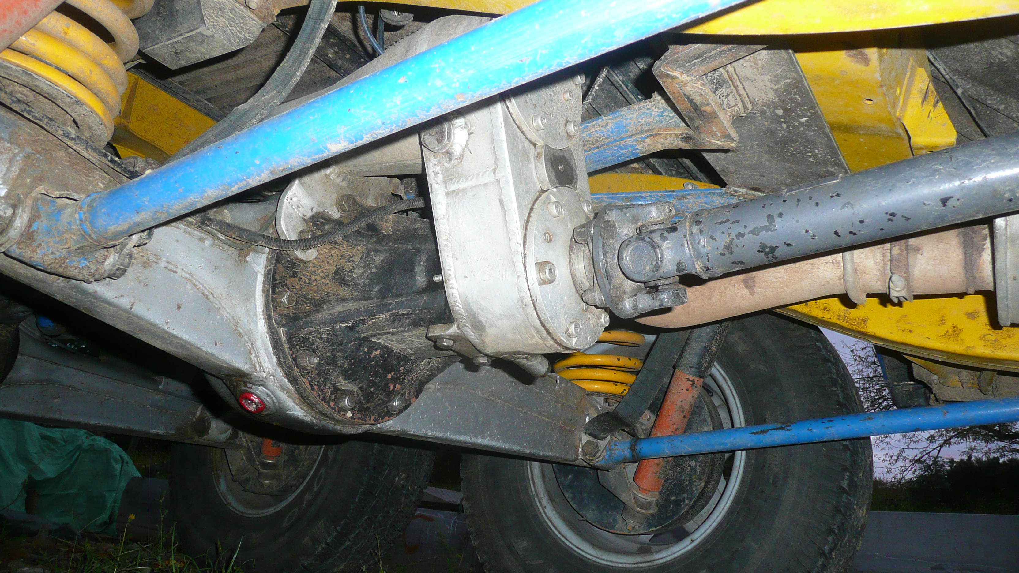 et encore des chapes d'amortisseur placées a l'arrière du pont alors que les amortos sont montés a l'avant mais avec des goupilles rapides qui permettent de permuter rapidement semble t'il...pas sur d'avoir compris le but de la manoeuvre...mais peut être que certains d'entre vous ont une idée sur la question ?