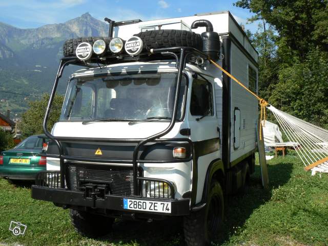 Superbe saviem TP3 4x4 115 chevaux turbo diesel (moteur 95 000 km ) equipee camping car carte grise 2 places vl 3.5t donc pas besoin de permis pl !!! de nombreuses choses on etes refaites : peinture , isolaton et ammenagement interrieur avec de nombreux rangements .....