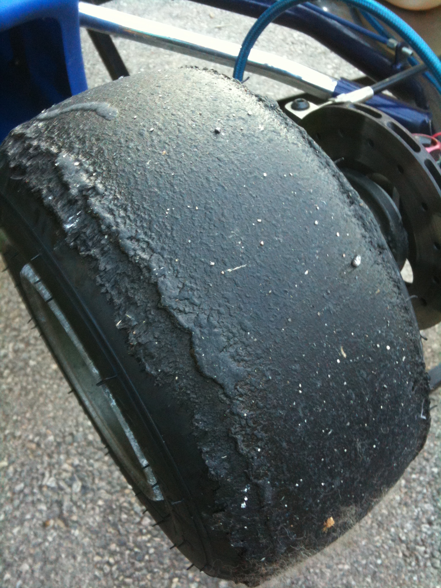 Pour exemple je vous montre ici un pneu qui s'est usé incorrectement après une touchette qui à tordu une barre de direction (c'est l'autre, c'est l'autre