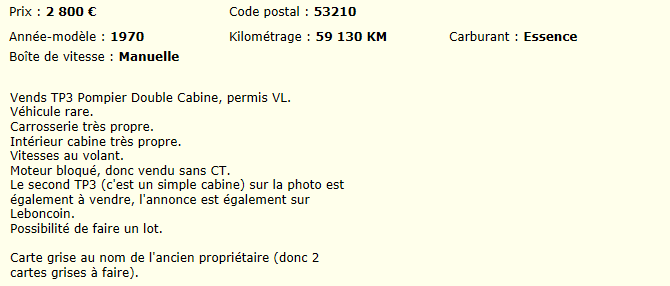 mais moteur bloqué , essence et pas les papiers a jour , un peu gourmant