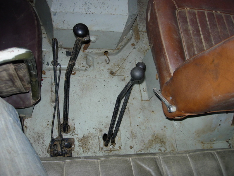 Le panneau avec tous les boutons c'est pour les équipements qui ont été montés pour sa vie active : interrupteurs de phares anti brouillard avant et arrière, de projecteurs, feux d'encombrement, sirène pompiers, interrupteurs du système de charge des batteries (branchement sur le 110v) et interrupteur de réchauffage du moteur et des équipements. Un dernier est malheureusement cassé, je ne sais pour le moment pas à quoi il sert.