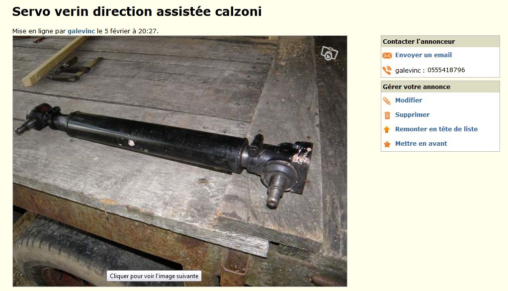 je lance aussi une info ici , car j ai trouvé mon verin calzoni dernierement sur une annonce de pièce detaché de SOVAM , c est des camion pour faire les marché qui on des fois une mecanique de saviem SB2 avec moteur man 712/720