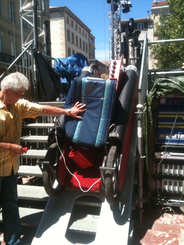 'lut Oliv, en faisant des recherches sur la table élévatrice de Bruttpit, j'étais tombé sur cet engin, et il en éxiste un semblable qui enroule les marches, un peut comme les caddys de grands mères avec trois roulettes de chaques côtés, impressionnant ce que ça emmène et ou ça passe. il y a des vidéos de démos sur youtube...