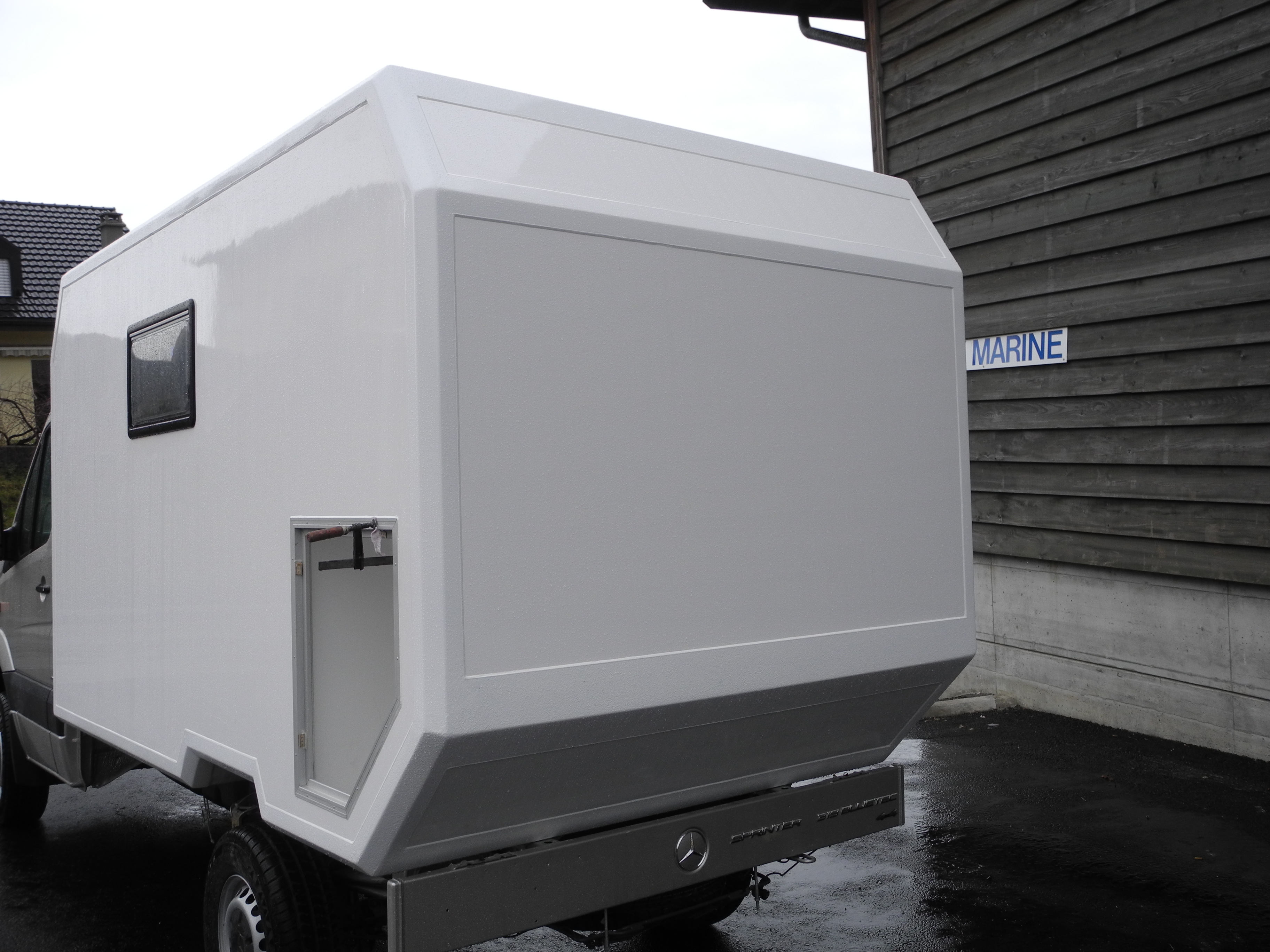 la cellule est entièrement fabriquée par mes soins en matériaux composite fait sous vide et en préimprégné je vais pas trop rentré dans les détails mais les connaisseurs apprécieront, effectivement quand je vois ce qui se trouve sur le marché fait à des prix qui ne justifie pas la pauvre qualité de leur construction et aménagement qui se désintègre à la premières centaines de Km de tôle ondulée . m’ont motivé à me lancer dans mes propres construction.