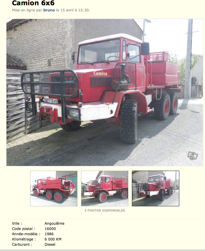 ex camion pompiers de marque M.O.L. avec seulement 6000 kms au compteur avec carnet entretien pouvant le justifier.