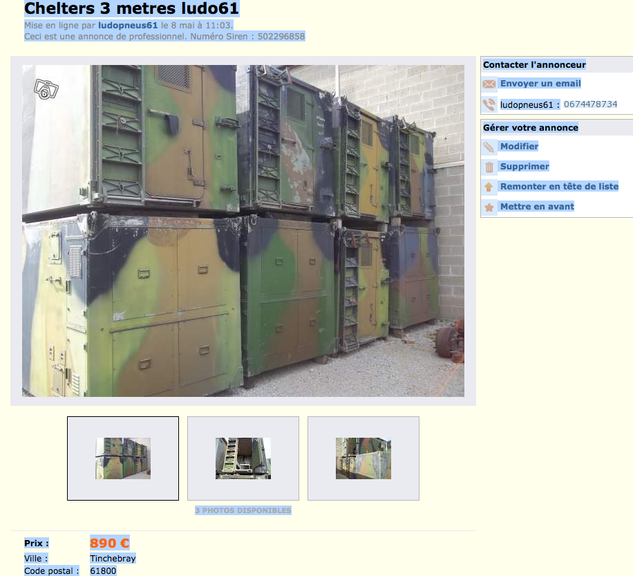 - ↳ Annonces de Shelter - cellule - tentes de toit