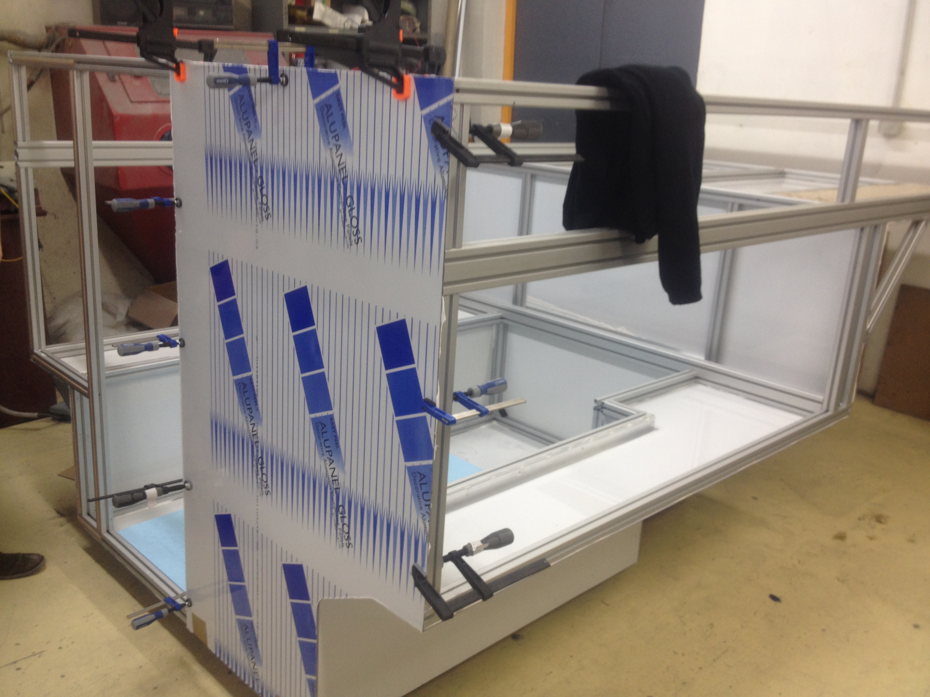 Bon , ben les panneux extérieurs sont de marque MULTIPANEL et série ALUPANEL et d'une épaisseur de 4mm et seront en 3mm pour l'intérieur . C'est un panneau sandwitch alut plastique alu , très résistant , qui s'usine très bien , se coupe , se lime , se taraude , se colle etcetc .